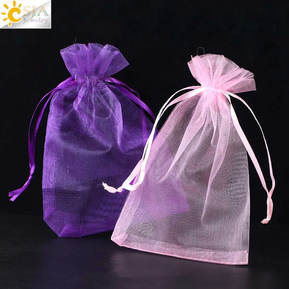 Шелковые мешочки CSJA, подарочные сумки из органзы, Свадебные вечерние украшения, упаковка для ювелирных изделий красного цвета, 10 шт.лот, F635