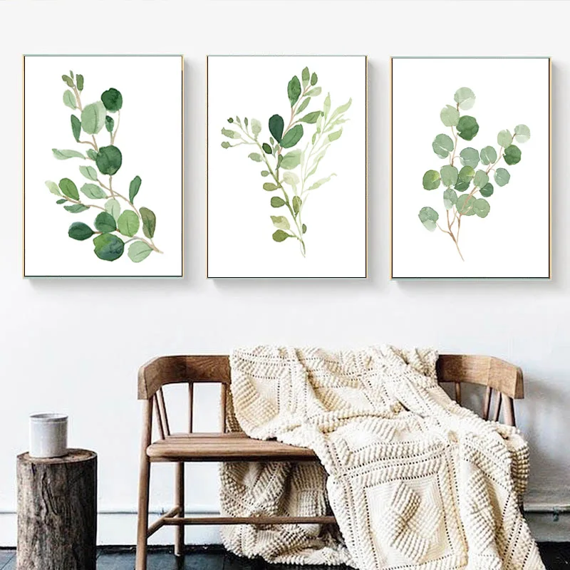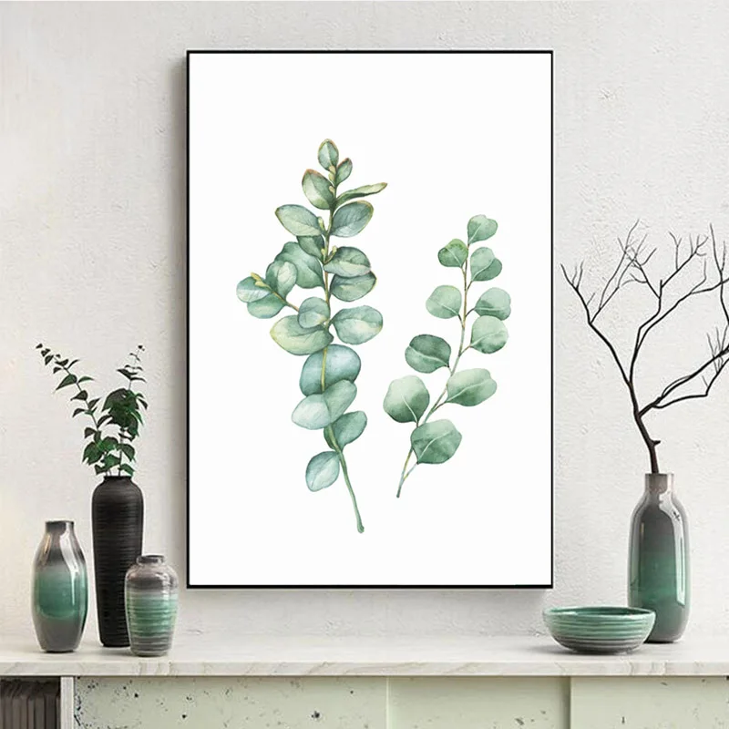 Ботанический принт зеленая настенная живопись на холсте