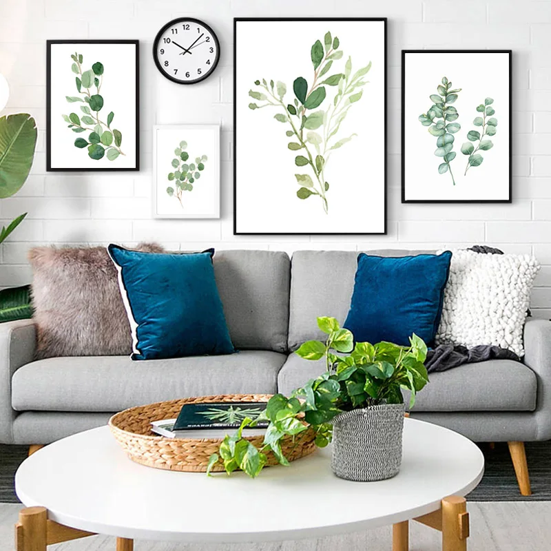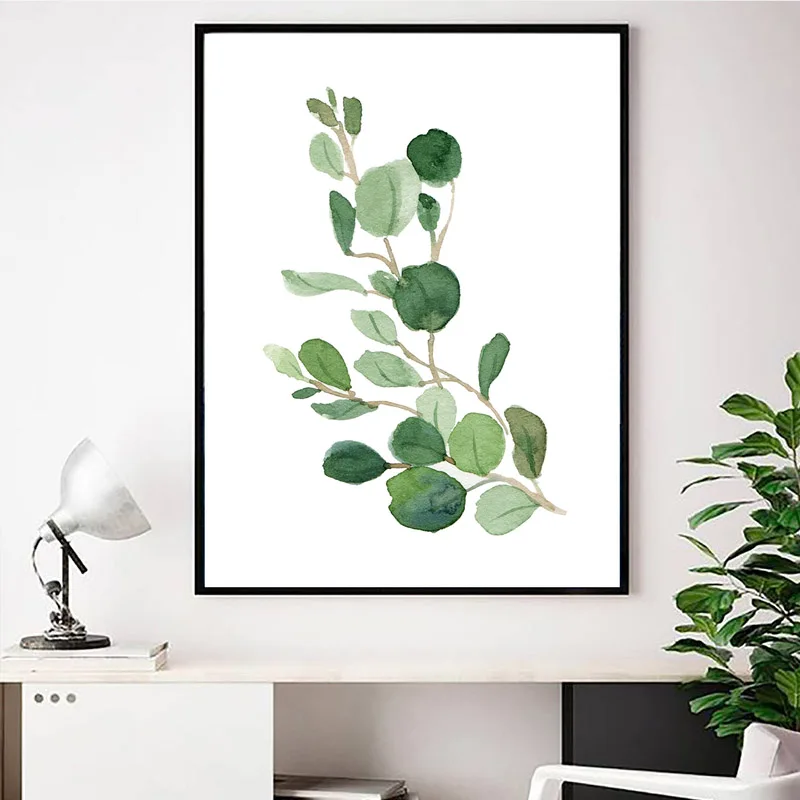 Плакат с акварельными листьями, ботанический принт, зеленая настенная живопись на холсте, картины для гостиной, домаДекор Украшение-кактус