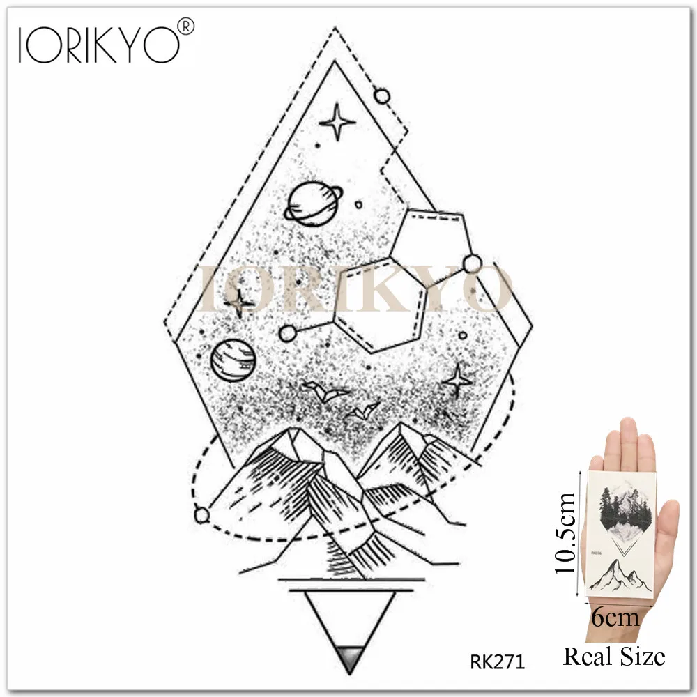 Геометрические черные лунные временные татуировки наклейки женские на руку геометрические горные поддельные татуировки треугольные звезды водостойкие татуировки