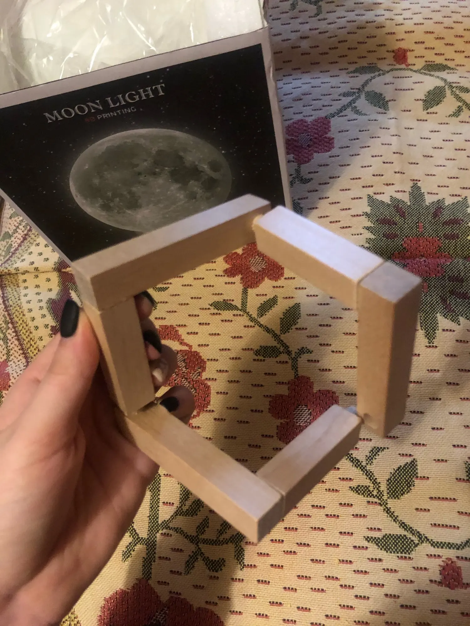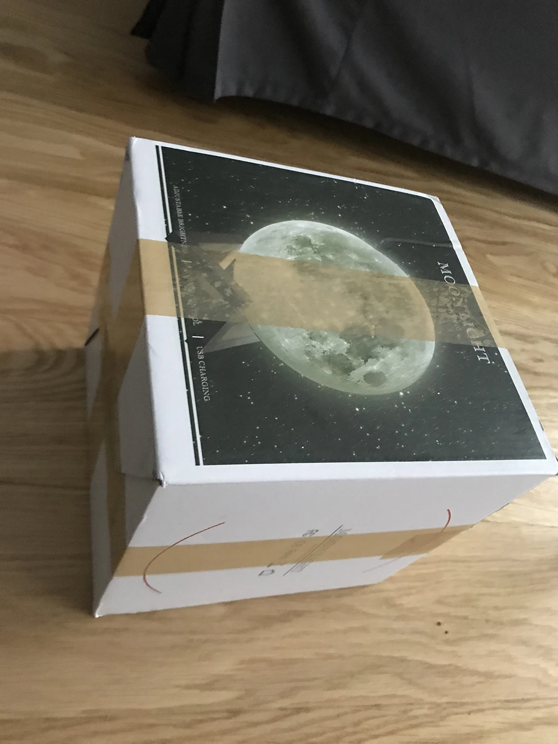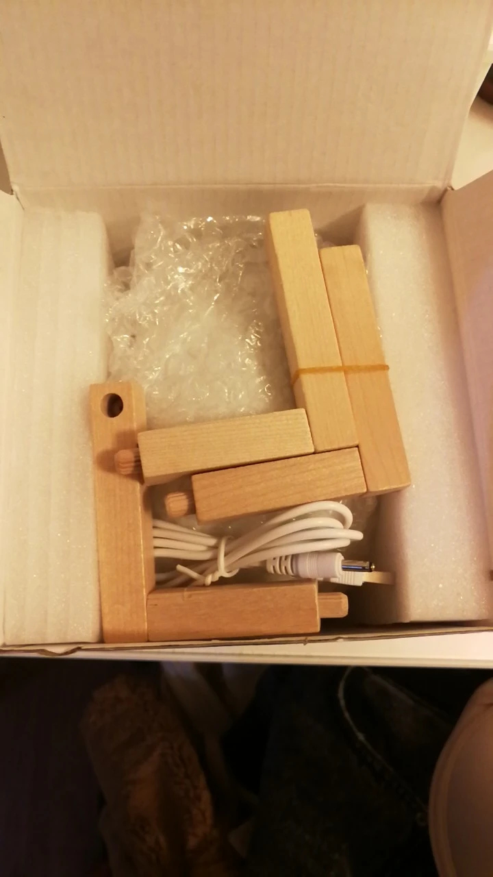 выглядит в жизни, как и на фото. доставка очень быстрая, буквально пару дней, но курьер не звонит заранее, мне просто повезло, что я была дома. на коробку наклеили скотч и информацию о получателе, что портит внешний вид, если брать ночник кому-то в подарок. подставка как-то туго собирается