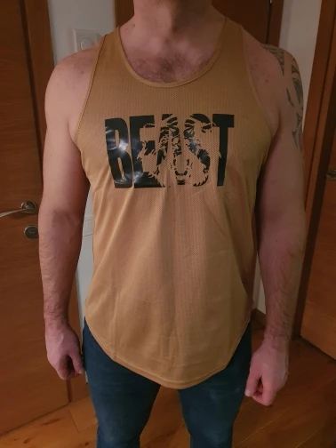 Майка немного маломерка, для 180см и 100кг надо брать XXL. Качество среднее, 100% синтетика, принт качественный.