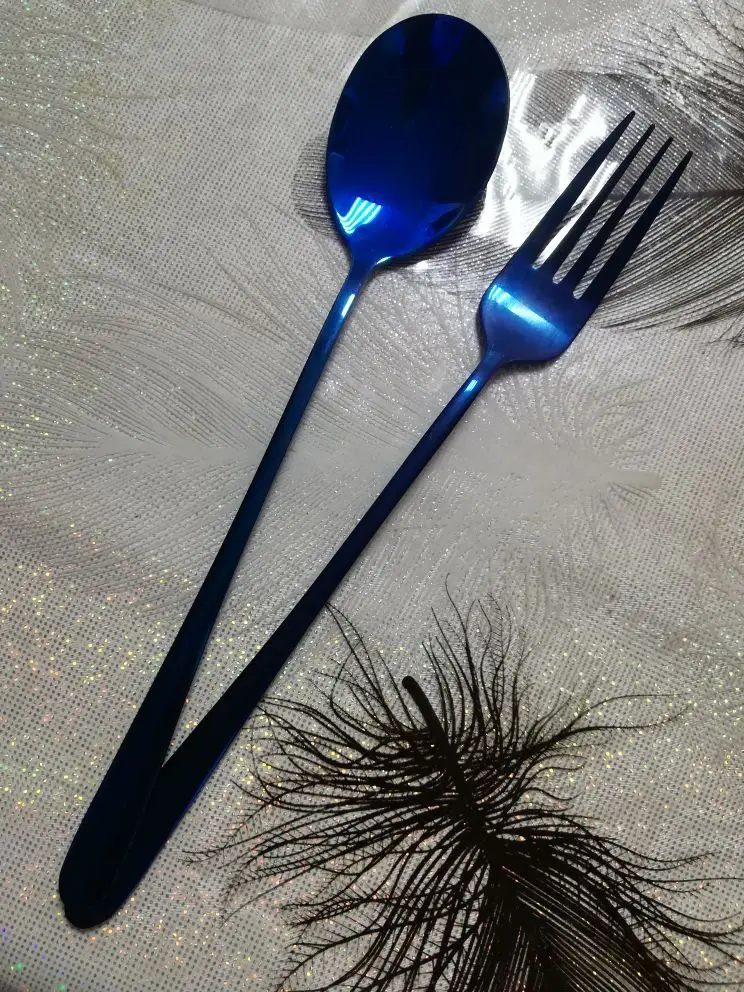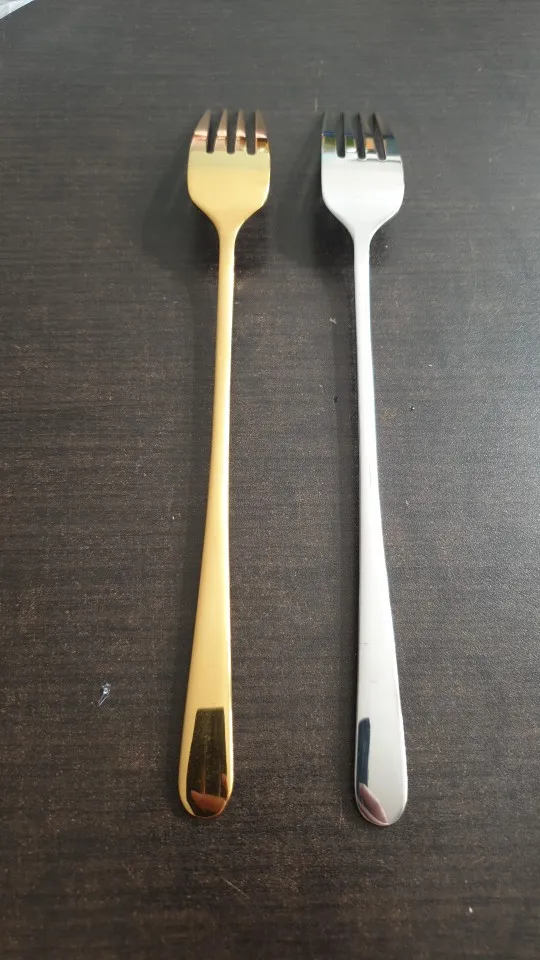 188 обеденный из нержавеющей стали вилка Корея красочный десерт вилка длинная ручка Золотой синий черная вилки Набор для отеля вечерние Прямая доставка