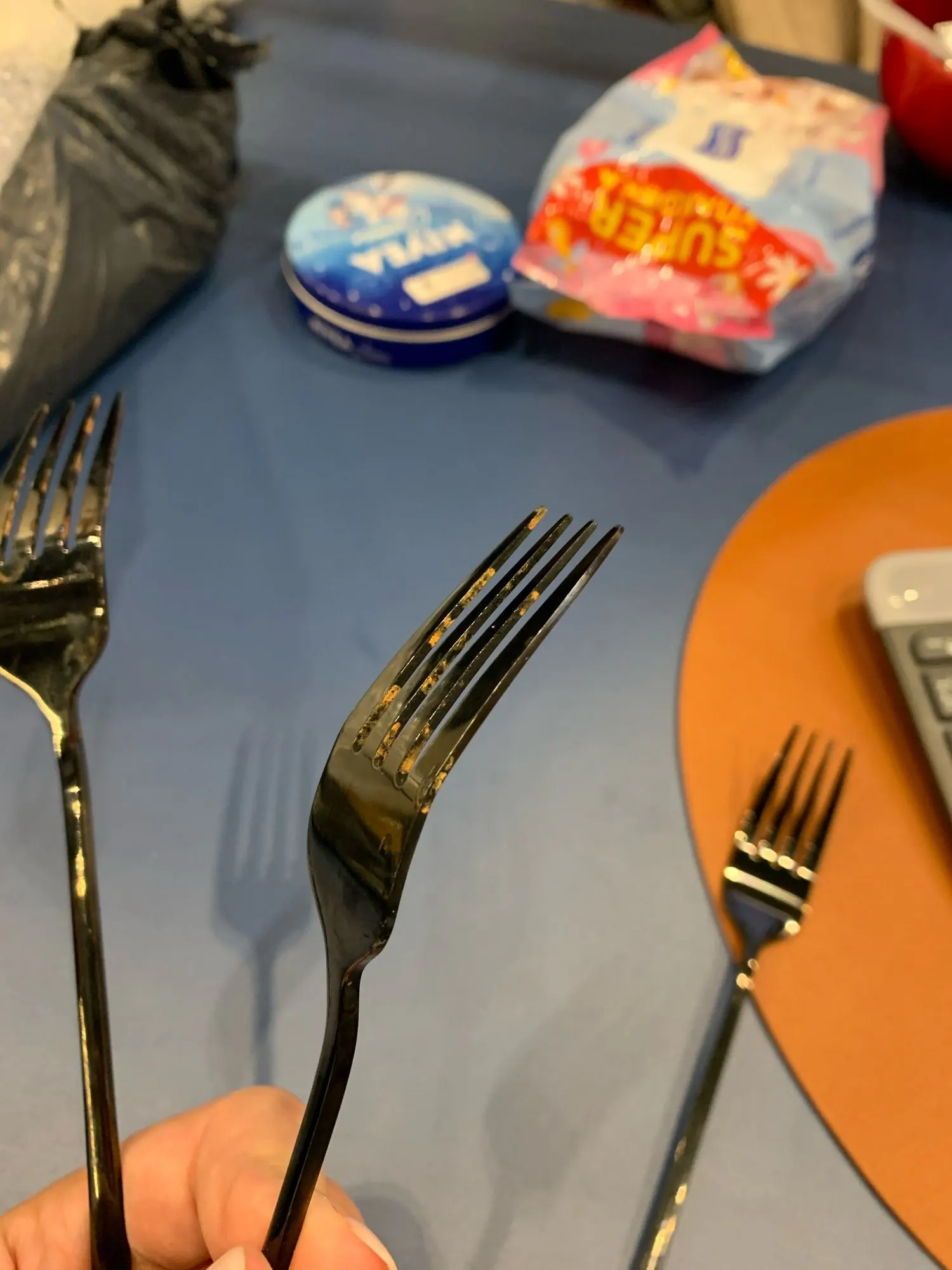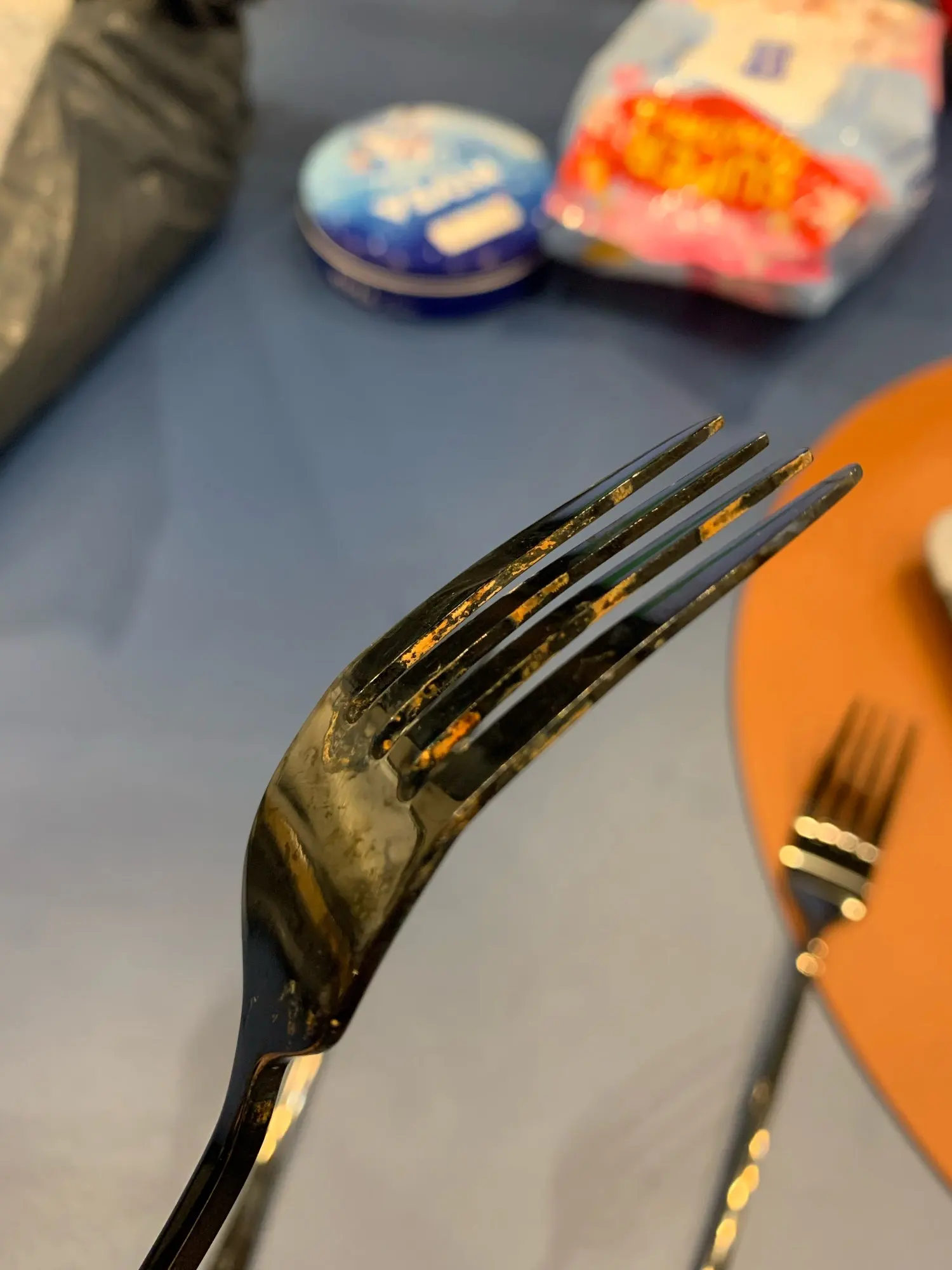 вместо этой вилки положили фиолетовую ложку которая дешевле