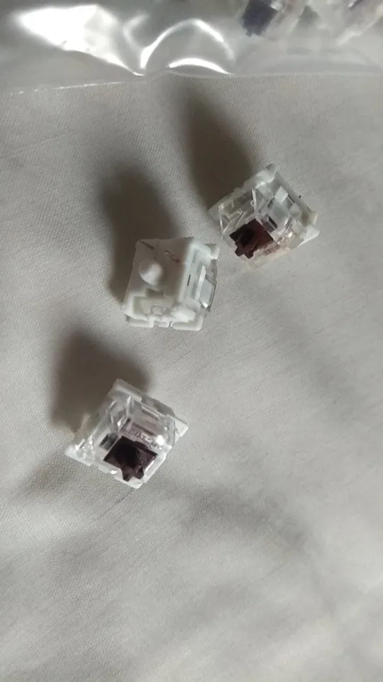 Набор коричневых кнопочных выключателей. Не могу точно сказать большое различие между красными и коричневыми переключателями. Но заметного щелчка, который вы получаете от синих выключателей, определенно нет.