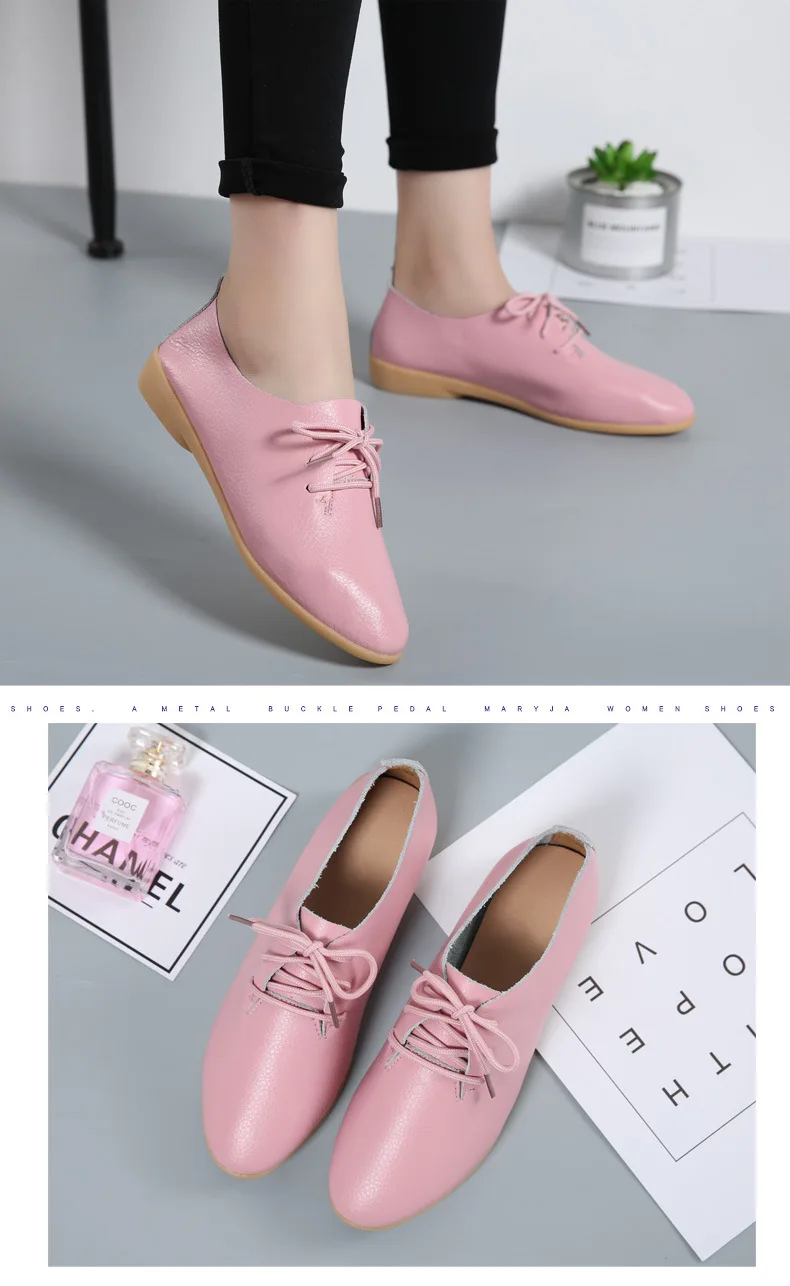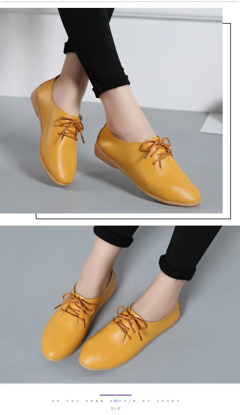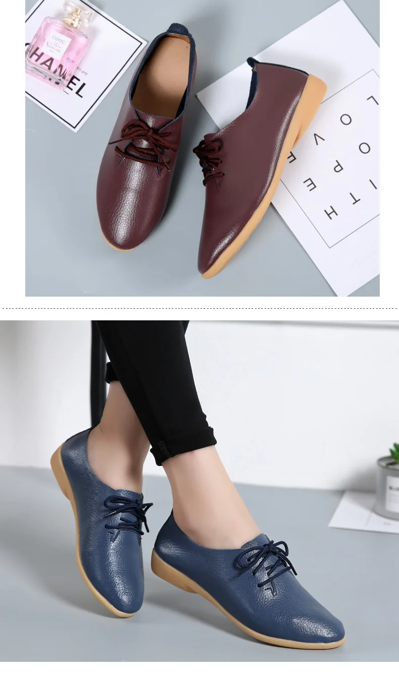 Женские кожаные туфли WOIZGIC для мам, лоферы на плоской подошве, мокасины из натуральной коровьей кожи со шнуровкой из свиной кожи, Размеры 35-41