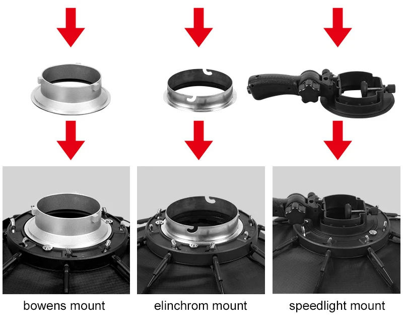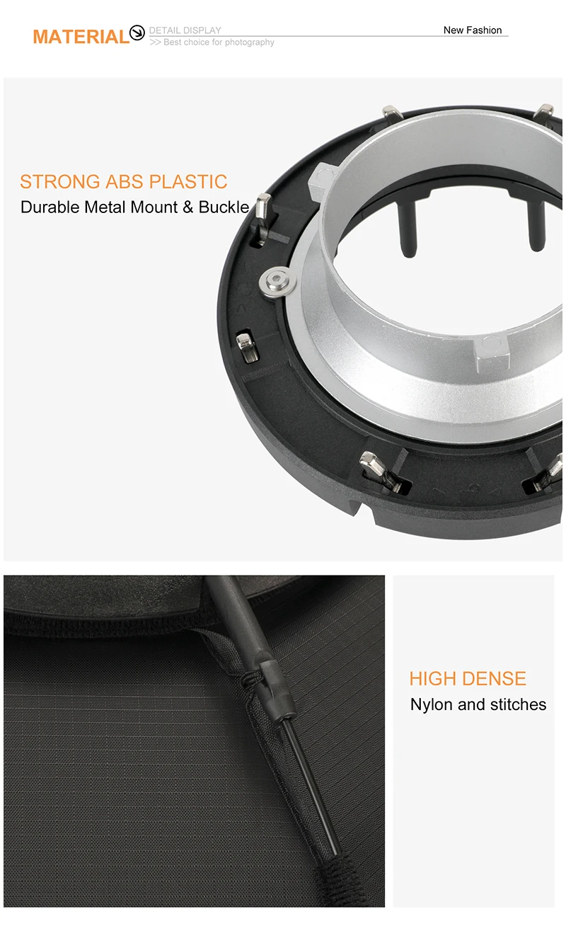 1. Внутри с отражающим серебром и поставляется с передним полупрозрачным диффузором, отлично подходит для speedlite, monolight, strobe или slave.