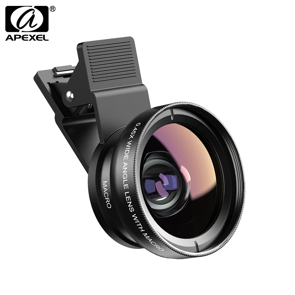 Объектив камеры APEXEL 10 шт.лот, оптовая продажа, супер широкий угол 0,45x + супермакро-объектив 12,5x HD для телефона, Прямая поставка