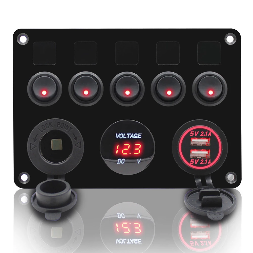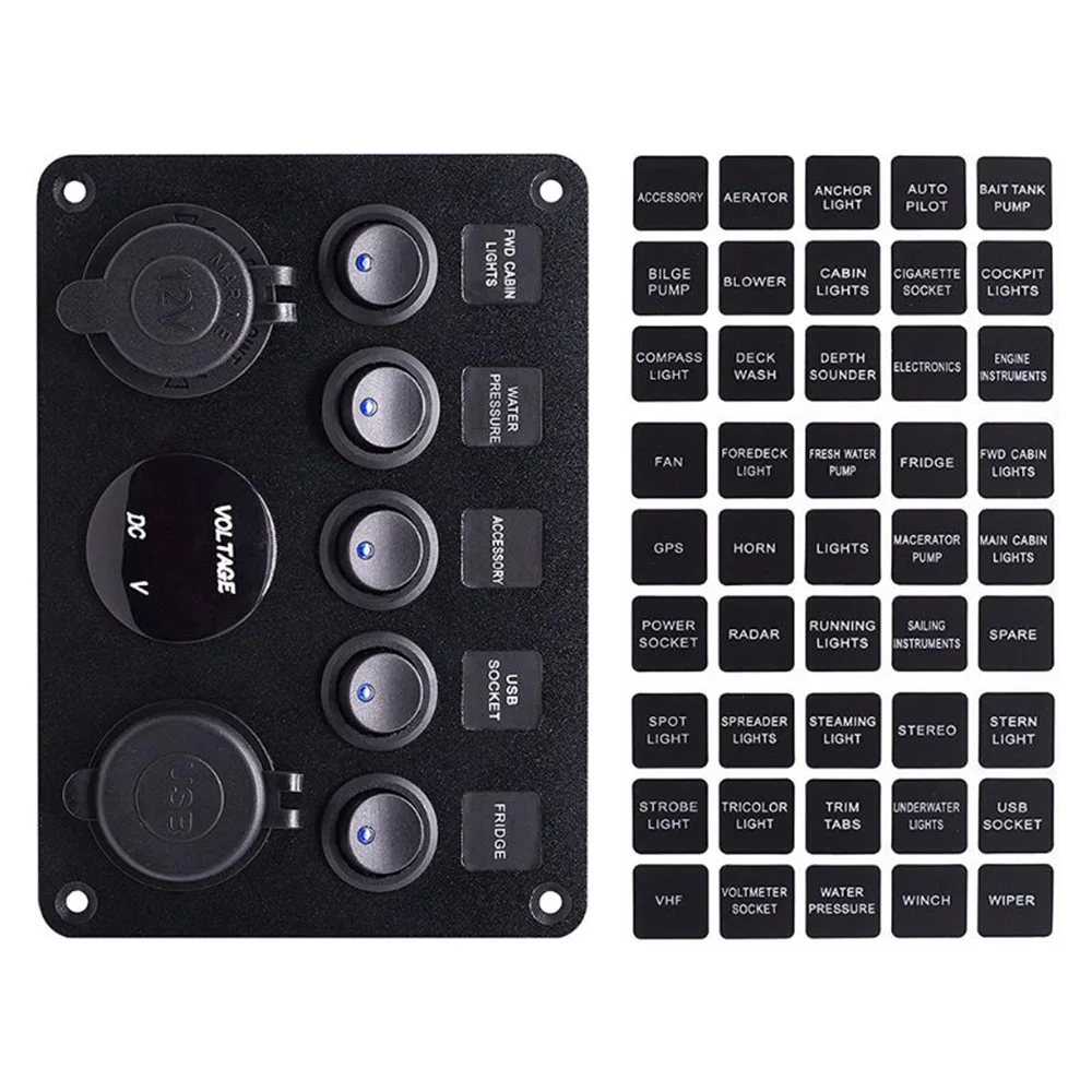 5 банд переключатель панель Цифровой вольтметр двойной USB порт 12 В выход комбинации водонепроницаемый автомобиль морской лодки LED кулисный переключатель панель