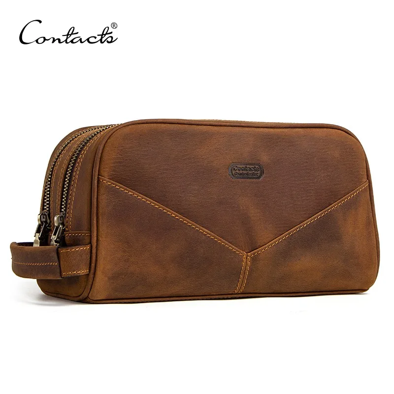CONTACT'S Кожаная косметичка из натуральной кожи для коротких поездок, в винтажном стиле мыть мешок для мужчин косметички 2019