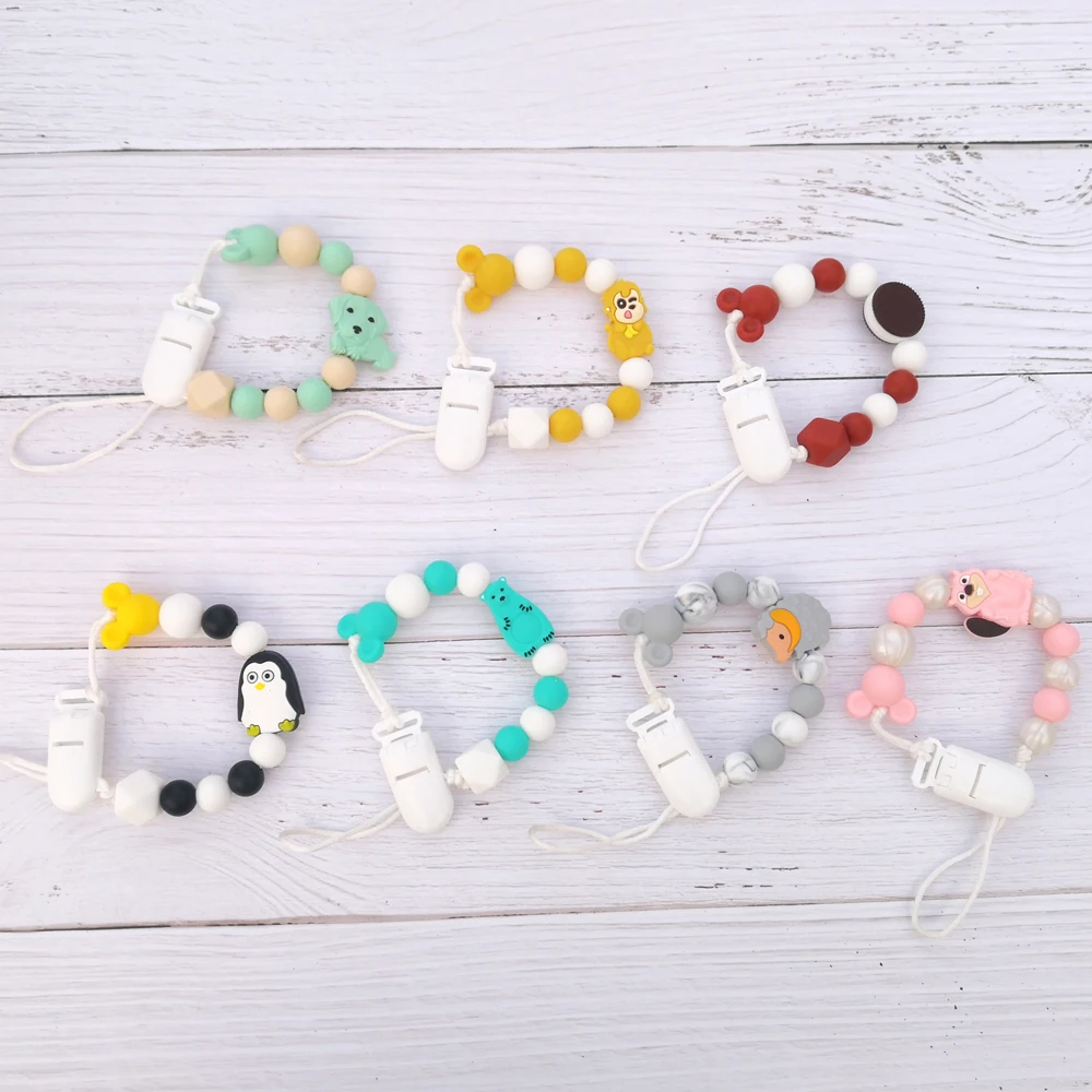 Прорезыватель для зубов, цепочка на Соска с животным зажимов, кулон Gameboy, держатель для соски, для прорезывания зубов, игрушки, не содержащие БИСФЕНОЛ, жевательные бусины для печенья