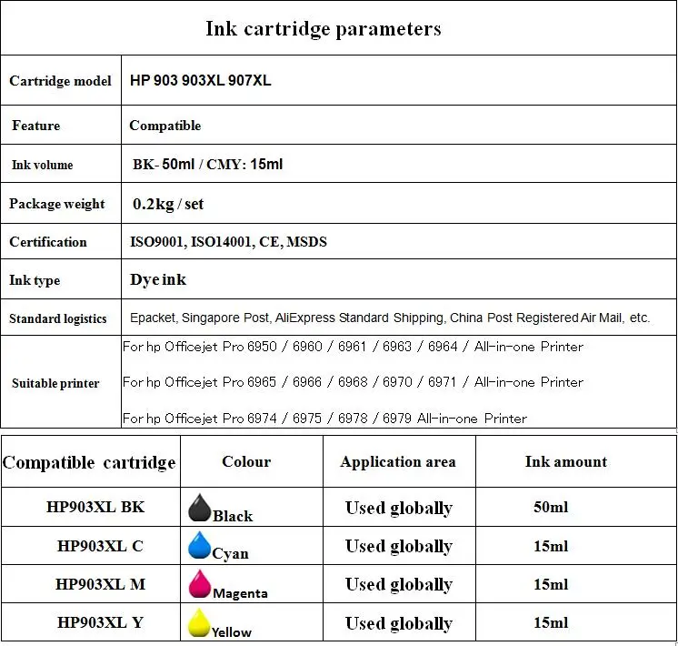 Model NumberFor Compatible HP 903xl 907xl ink cartridge