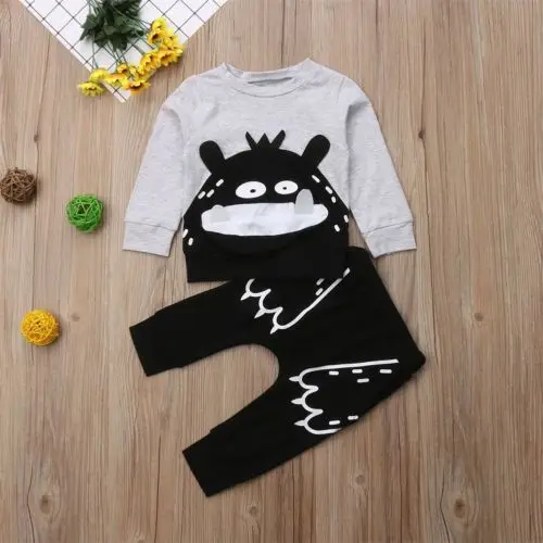 Одежда для новорожденных мальчиков и девочек топ с длинными рукавами и рисунком + штаны, леггинсы из 2 предметов Размер От 0 до 3 лет