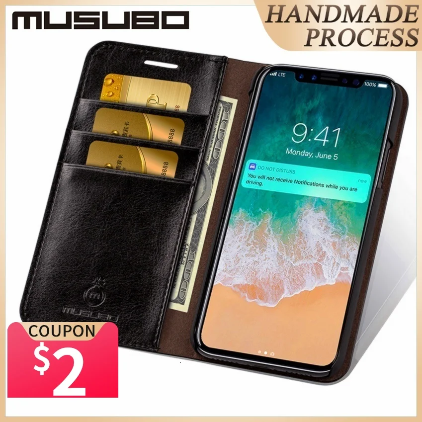 Роскошный кожаный чехол Musubo для iphone X, флип-кейс, силиконовый...