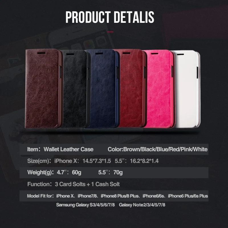 Пожалуйста, обратите внимание:1. Материал: искусственная кожа2.100%Ручной работы; Изготовление3. Кожа на ощупь: гладкая на ощупь4. 6 видов классических и модных цветов на выбор5. Внутри со слотом для карт и очень удобно разместить наличные деньги6. Функция: Отличная защита от грязи, царапин и повреждений7.Чехол не имеет магнита