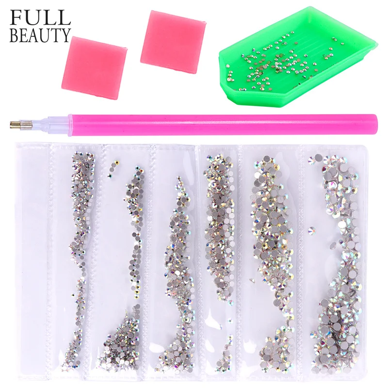 Блестящие Стразы для ногтей 1440 шт., стеклянные стразы без горячей фиксации с плоской задней стороны, 3D набор украшений для ногтей CH880