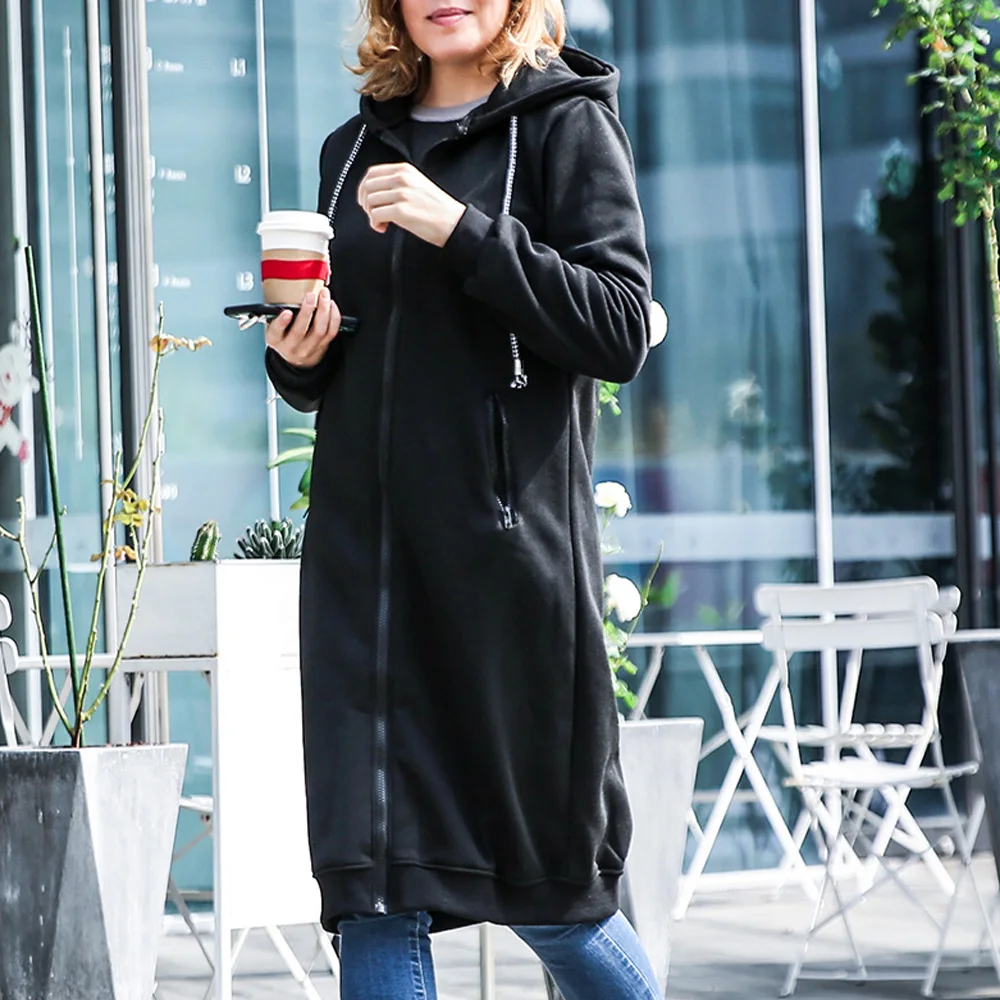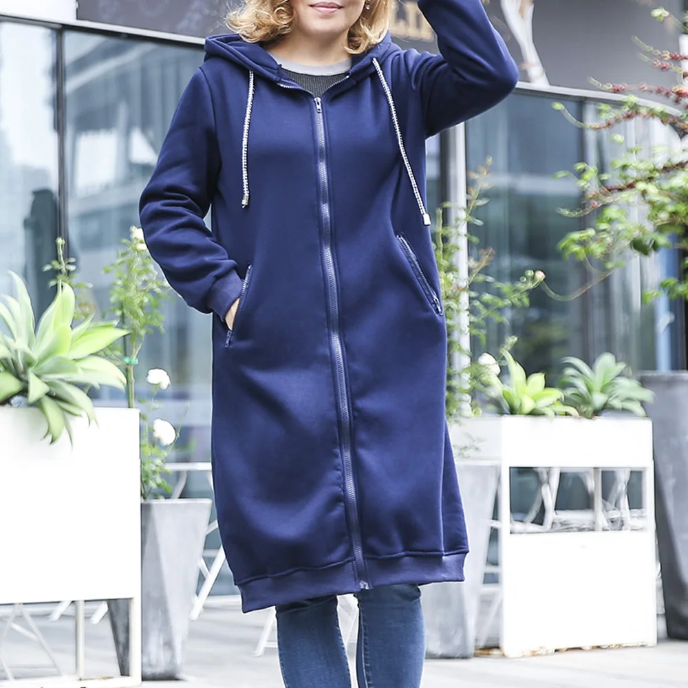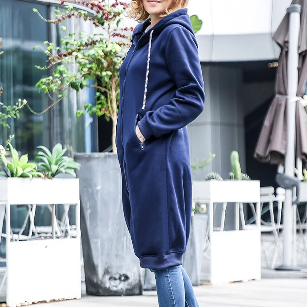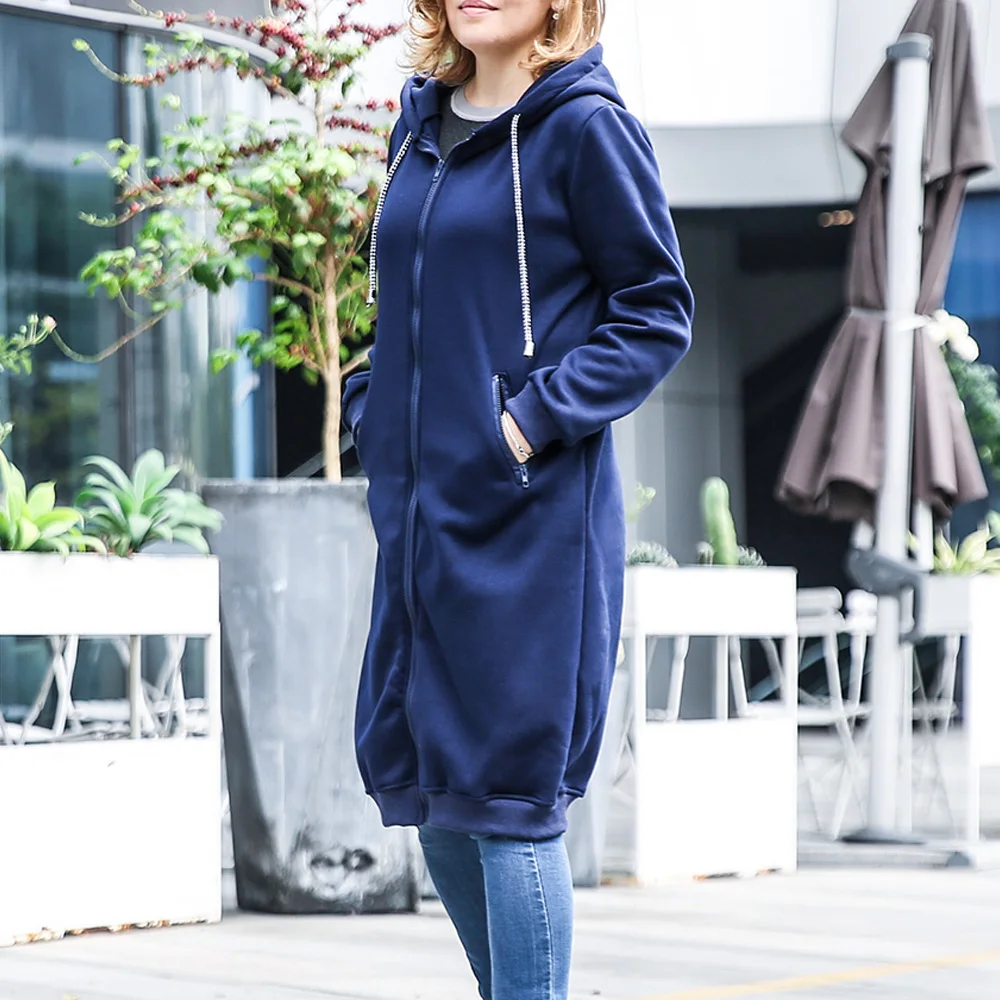 Женские удлиненные худи Wipalo размера плюс, на молнии, с капюшоном, осенне-зимняя Толстовка с длинным рукавом, повседневная куртка, верхняя одежда для женщин