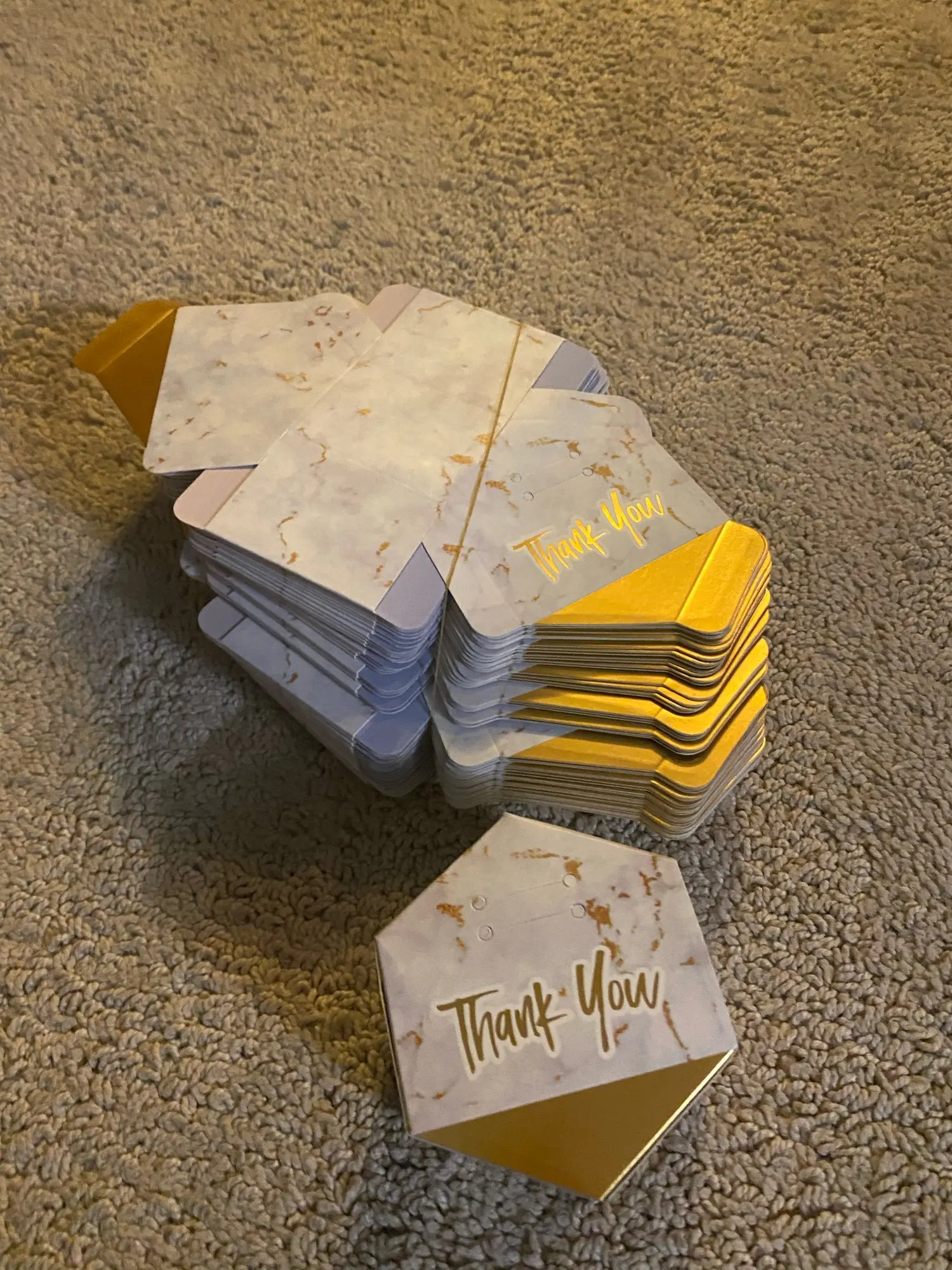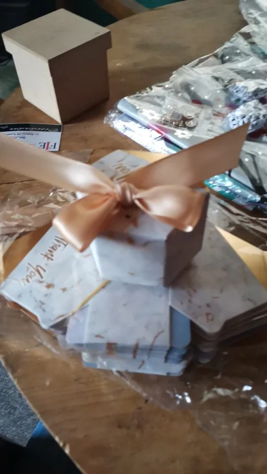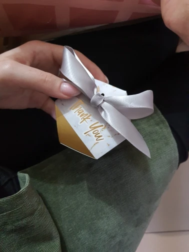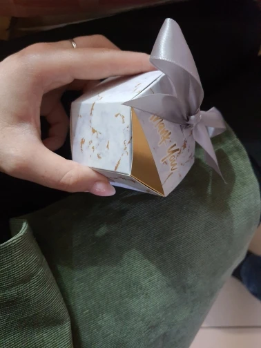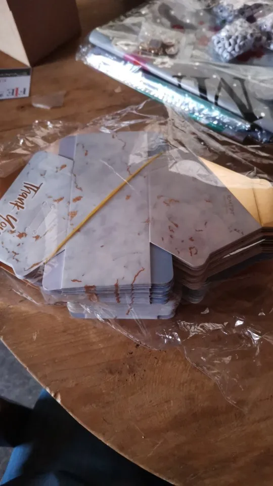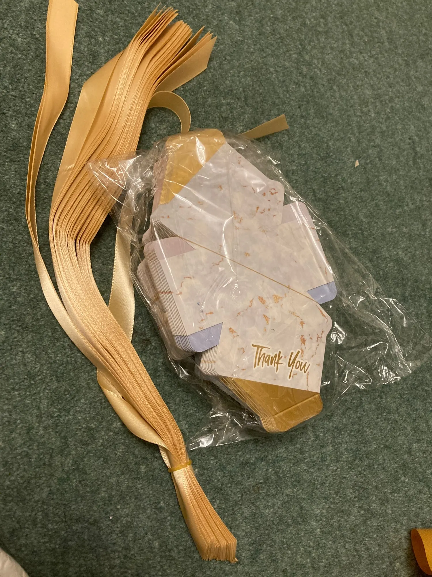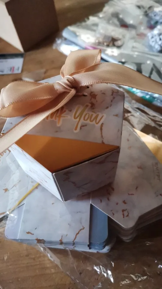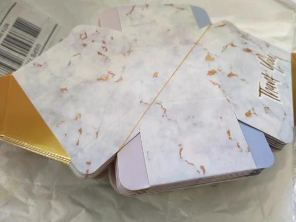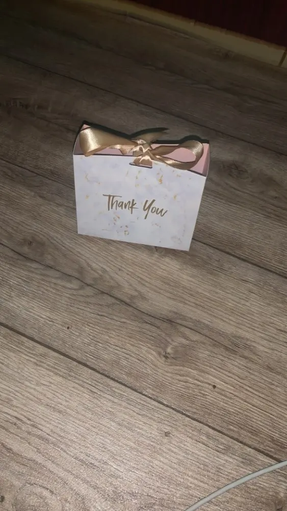Очень мило, они выглядят точно так же, как на фотографиях! Лента довольно длинная, но лучше бы она была слишком длинной, потому что ее легко разрезать, а не слишком короткой. Коробки не требуют клея, чтобы склеить их вместе и очень прямые вперед, чтобы сложить и сделать макияж.