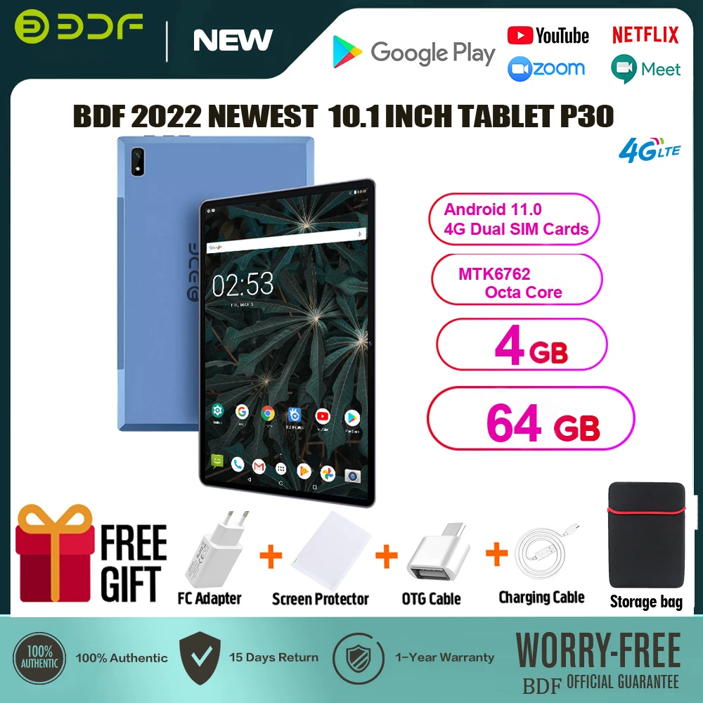 BDF 2022 новый 10,1 дюймовый планшетный ПК IPS 4 ГБ ОЗУ 64 Гб ПЗУ Восьмиядерный 4G LTE сетевые звонки Bluetooth WiFi GPS Pro планшет Android 11,0