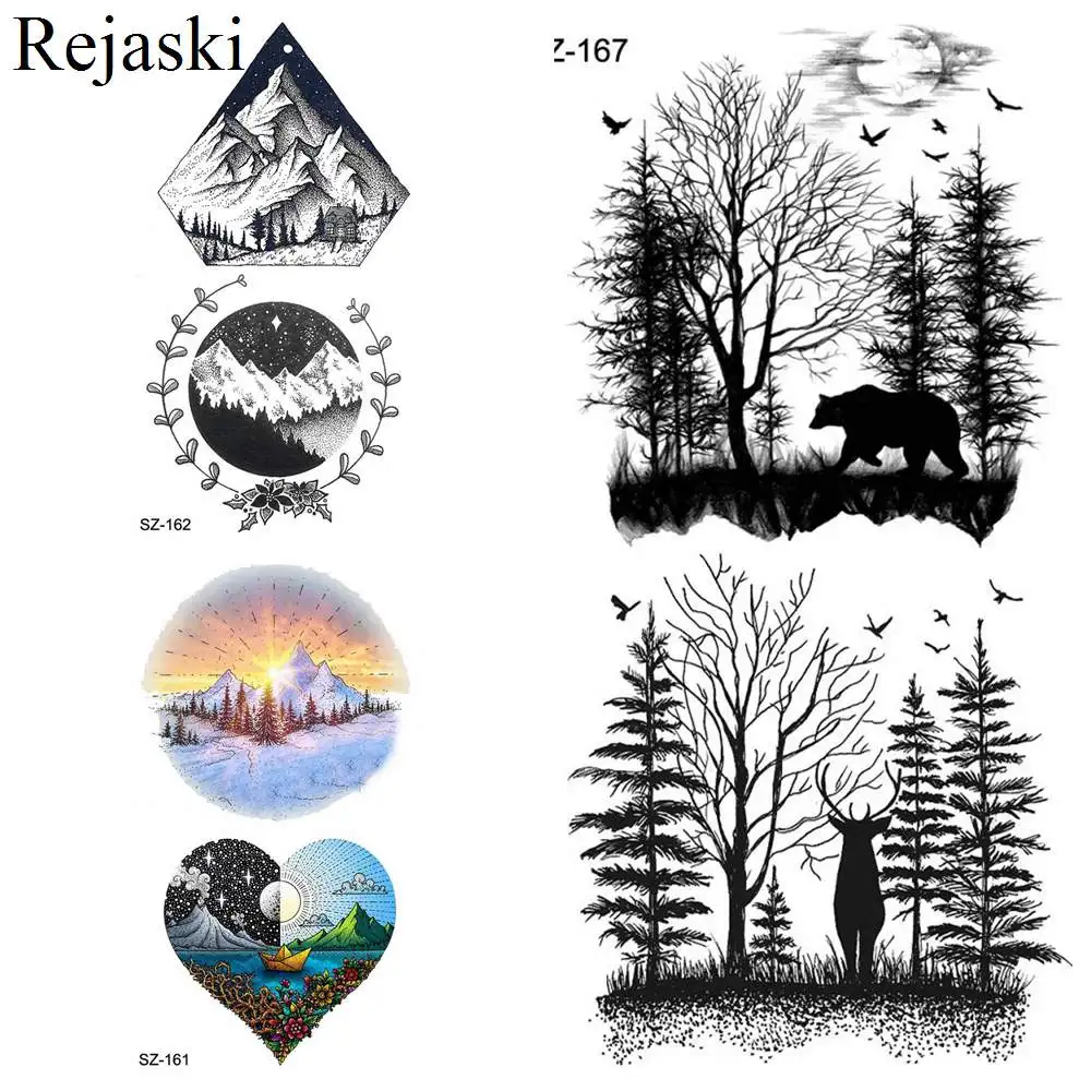 Тату-наклейки Rejaski водостойкие на руку, временные татуировки для мужчин и женщин, самоклеящиеся черные фальшивые татуировки 3D в виде леса