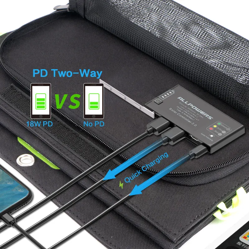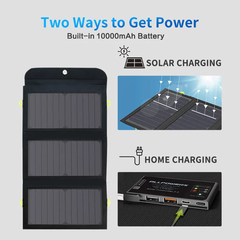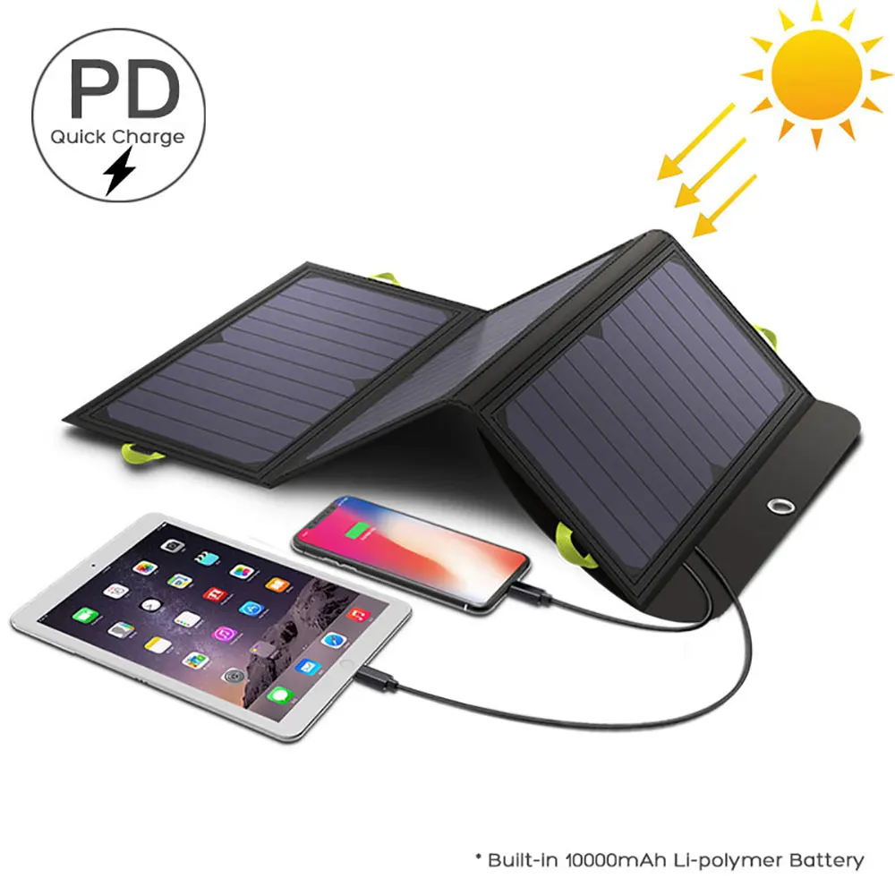 Зарядное устройство на солнечных панелях, складное, Allpowers, портативное, перезаряжаемое, 10000мАч, с разъемом Type-C для быстрой зарядки, для iPhone X, XR, XS Max, Samsung, Huawei