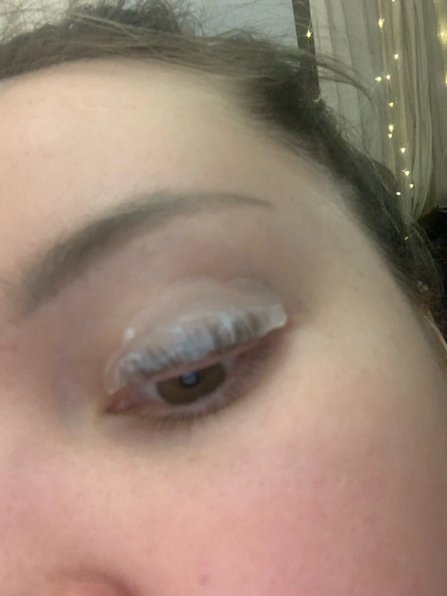 Спочатку брала слабкий клей.Не тримав.Вирішила взяти сильніший цей. Так от мої спостереження. Сам бігудік краще клеїти на тей легший клей бо цим просто зтягується шкіра, відмити важко пару днів якщо його й не видно то ніби зморщені повіки.Тому самі повіки мажу легшим клеєм, а на бігудік цей щоб самі вії тримав.І все буде класно. Саме цим міцнішим клеєм вдалось нормально їх підкрутити.