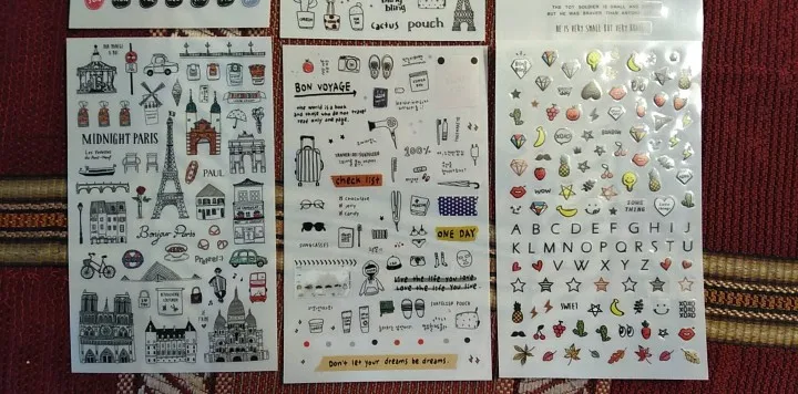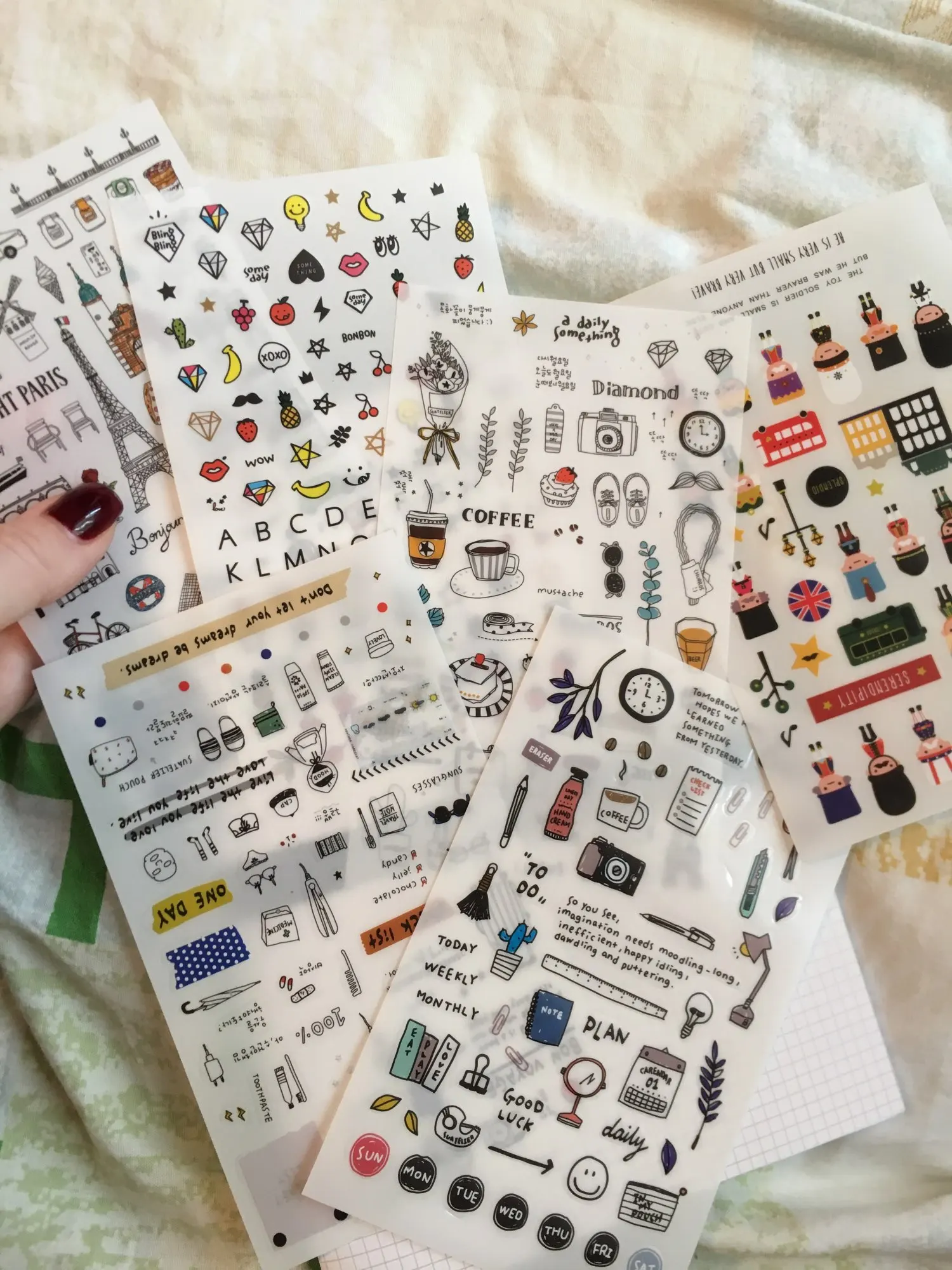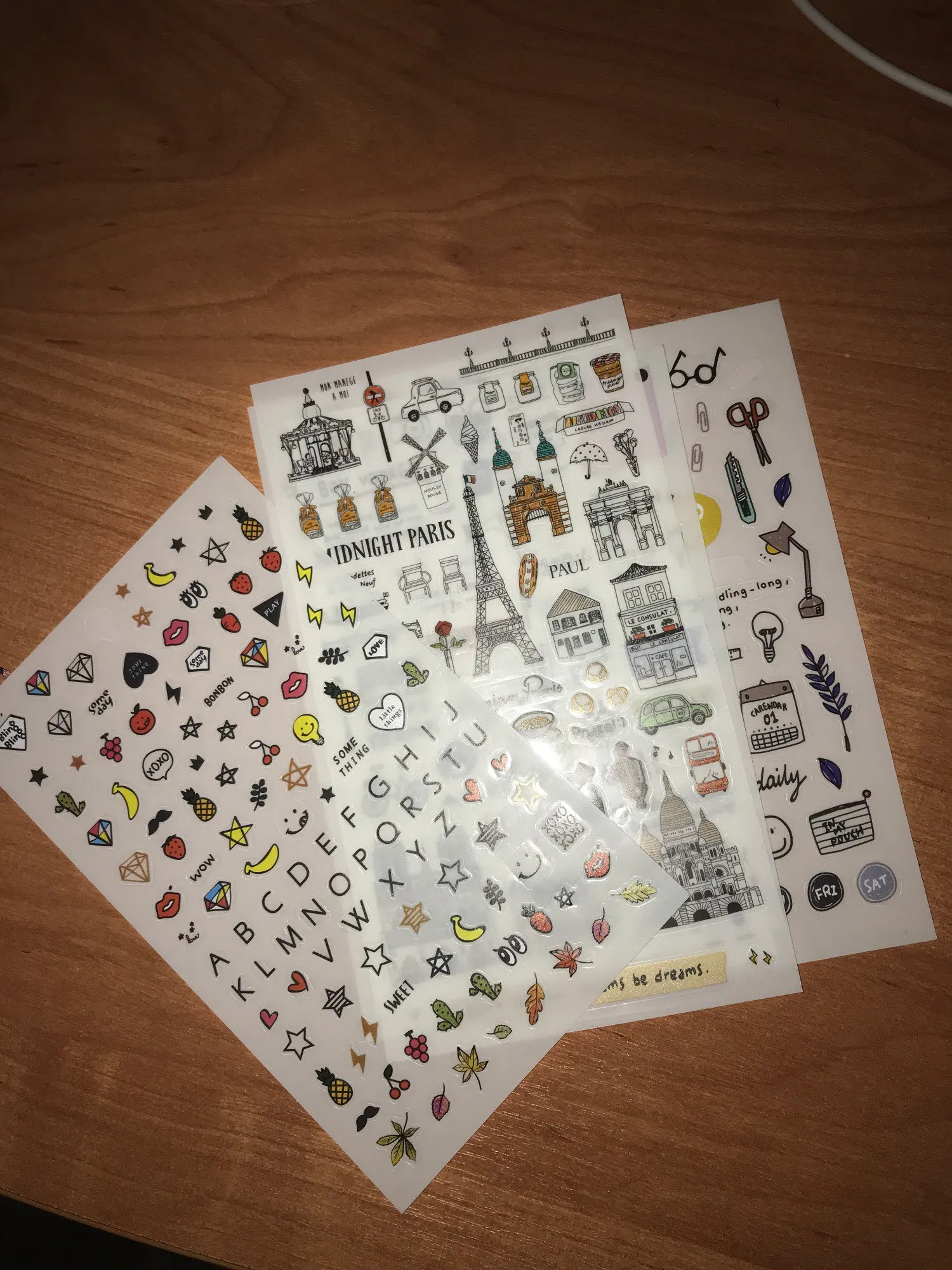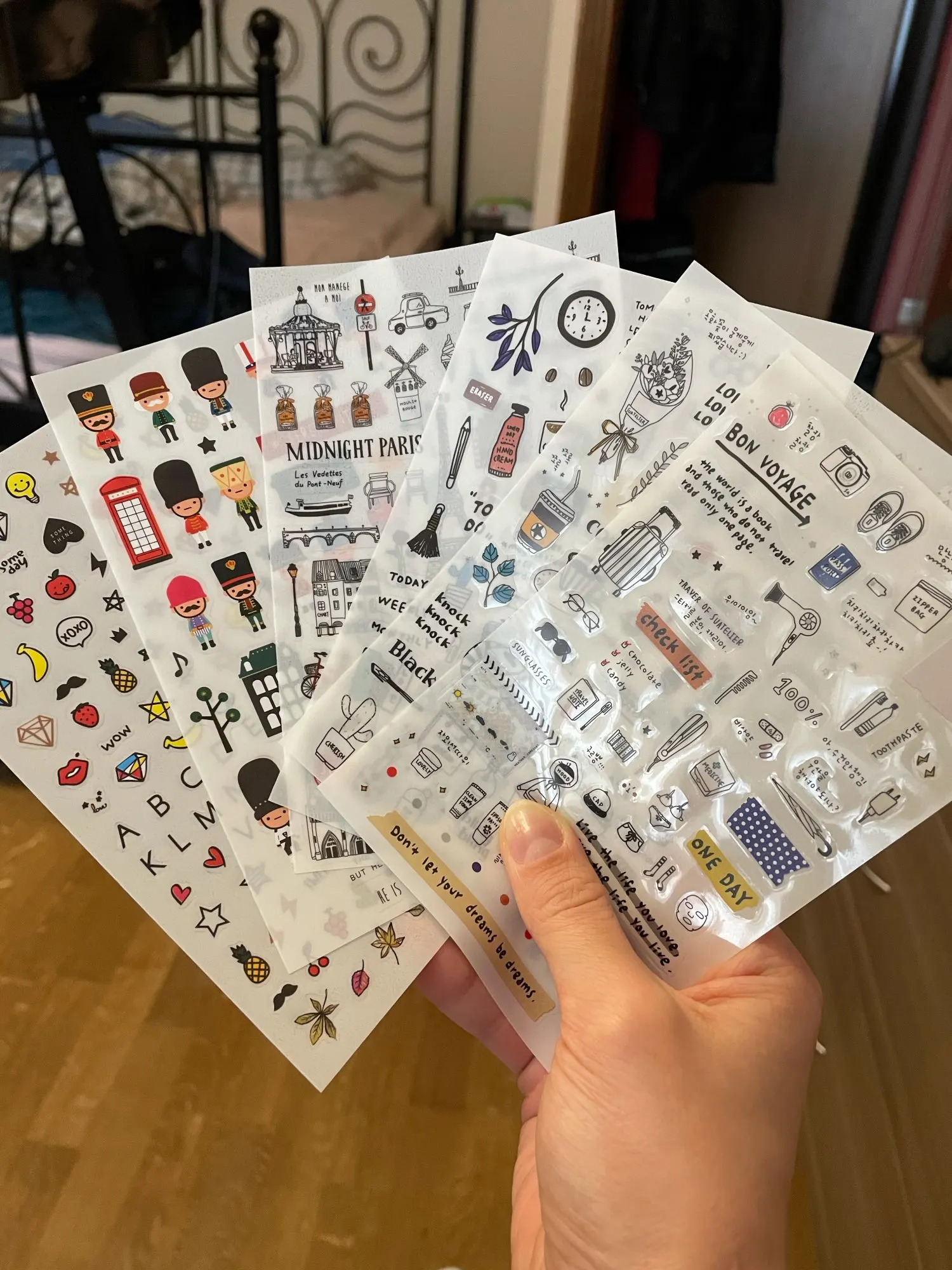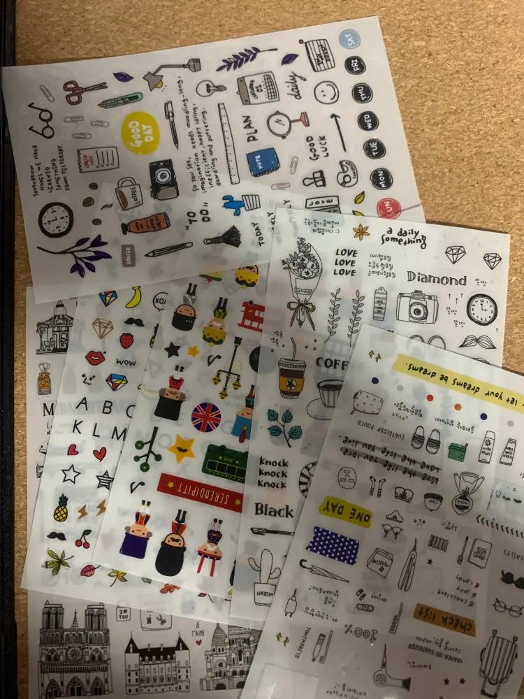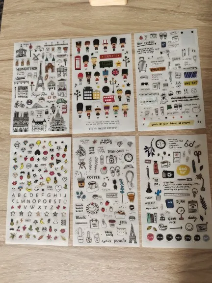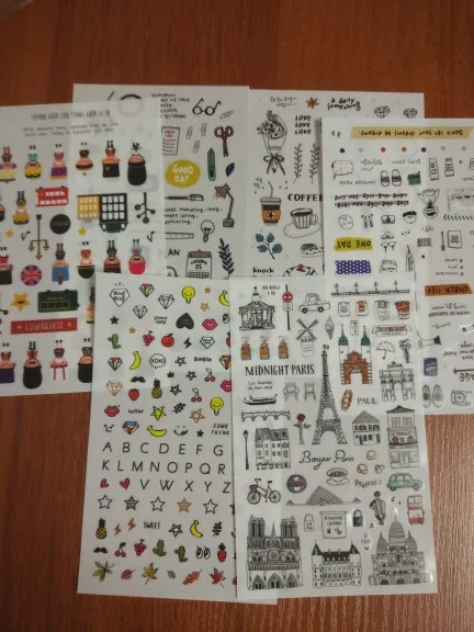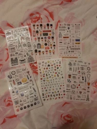 много наклеек за маленькую цену, выглядит супер, для дневника или ежедневника самое то приехало 5 листов
