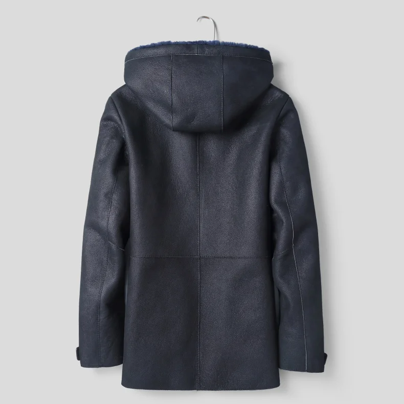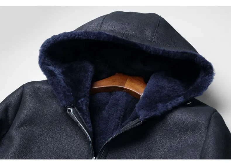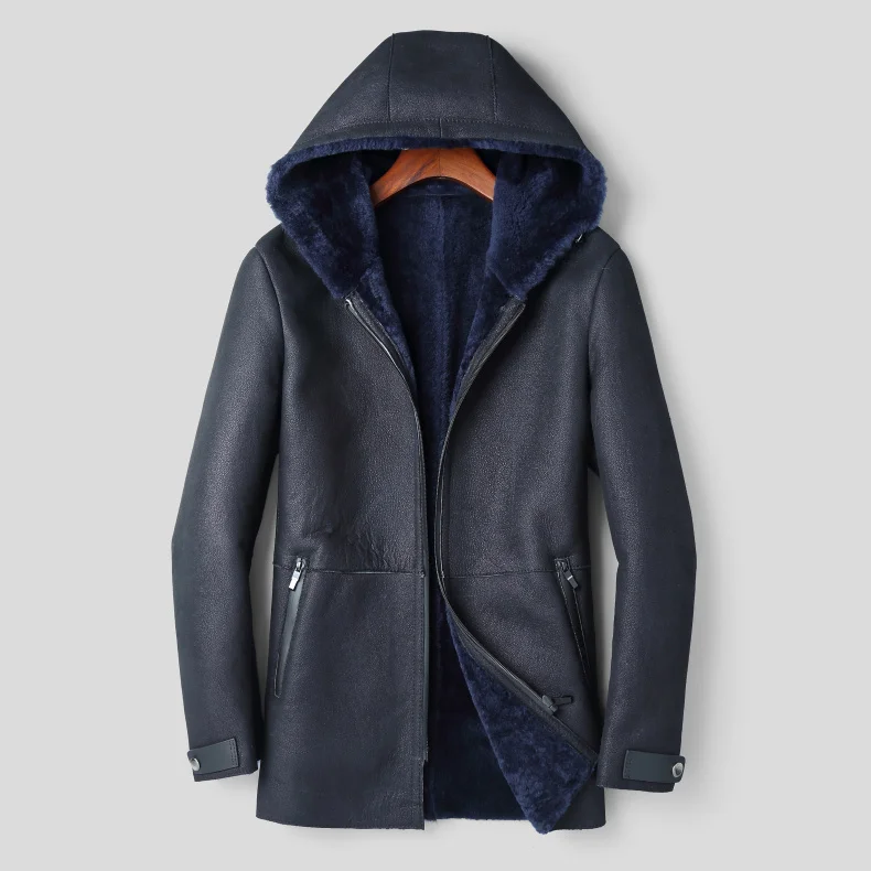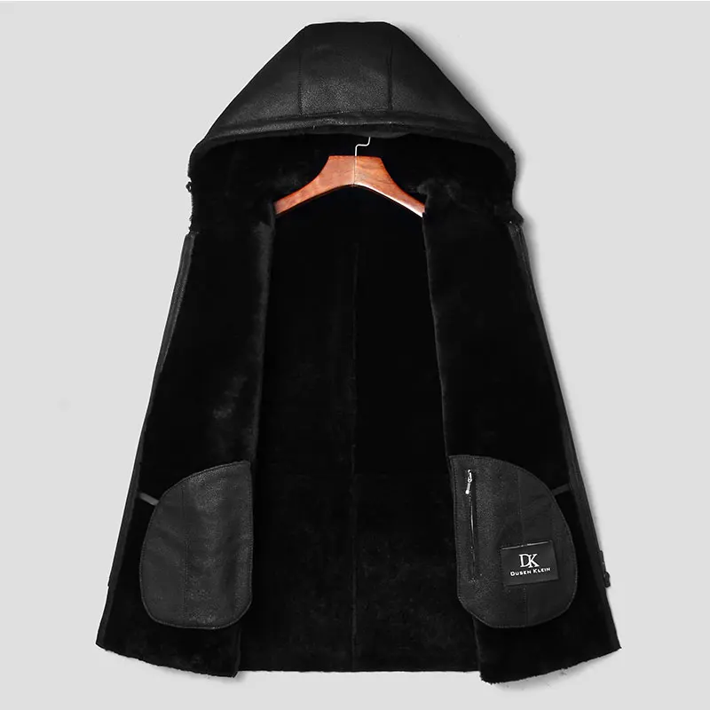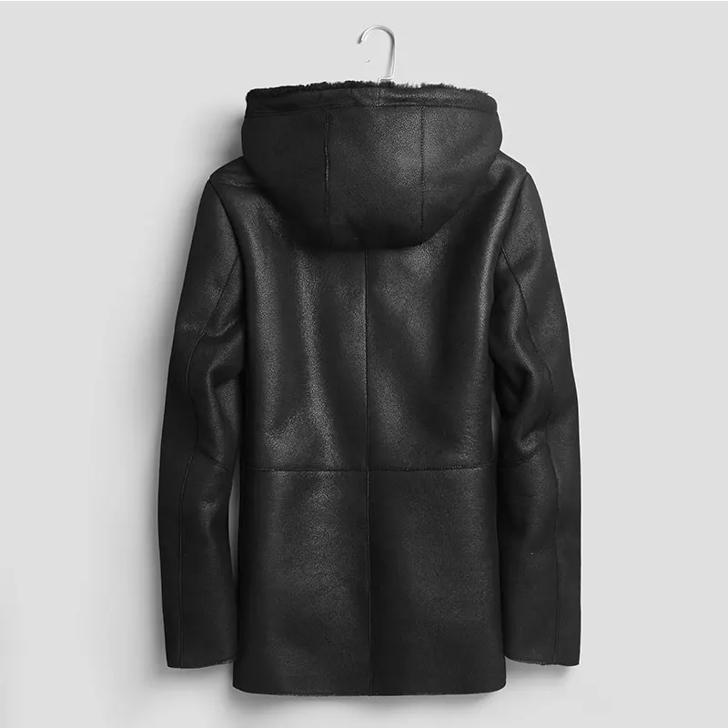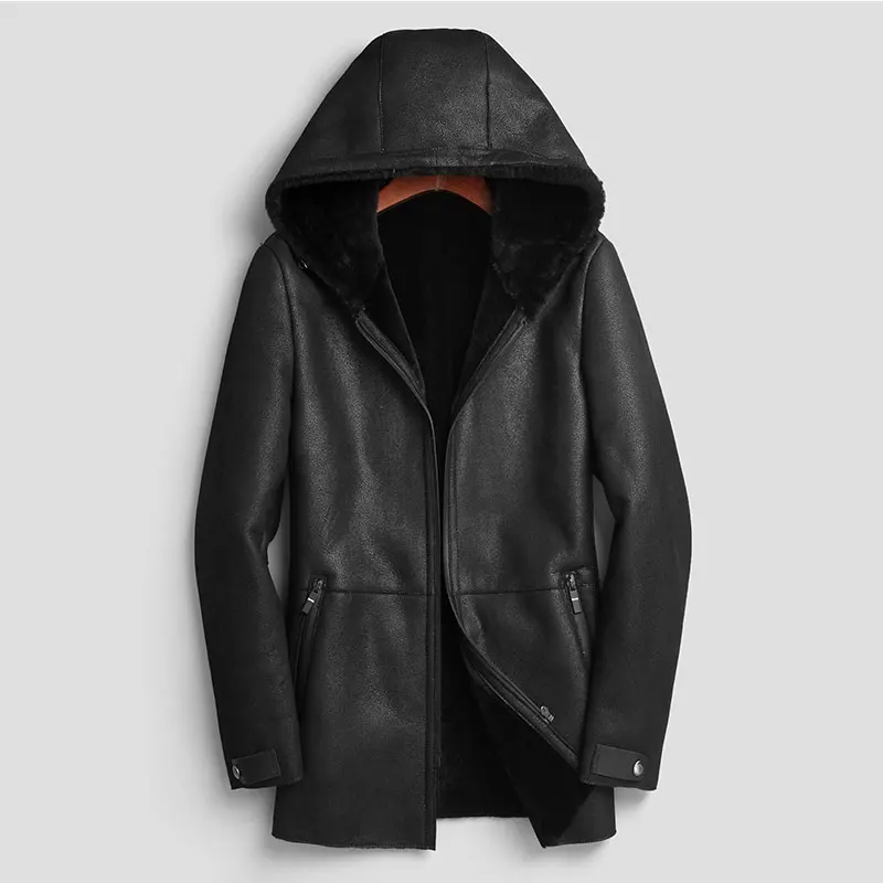 Мужская куртка из натуральной овечьей кожи, зимнее теплое шерстяное пальто, черная овчина, верхняя одежда, 2018 новый бренд, роскошный толстый мех e1625