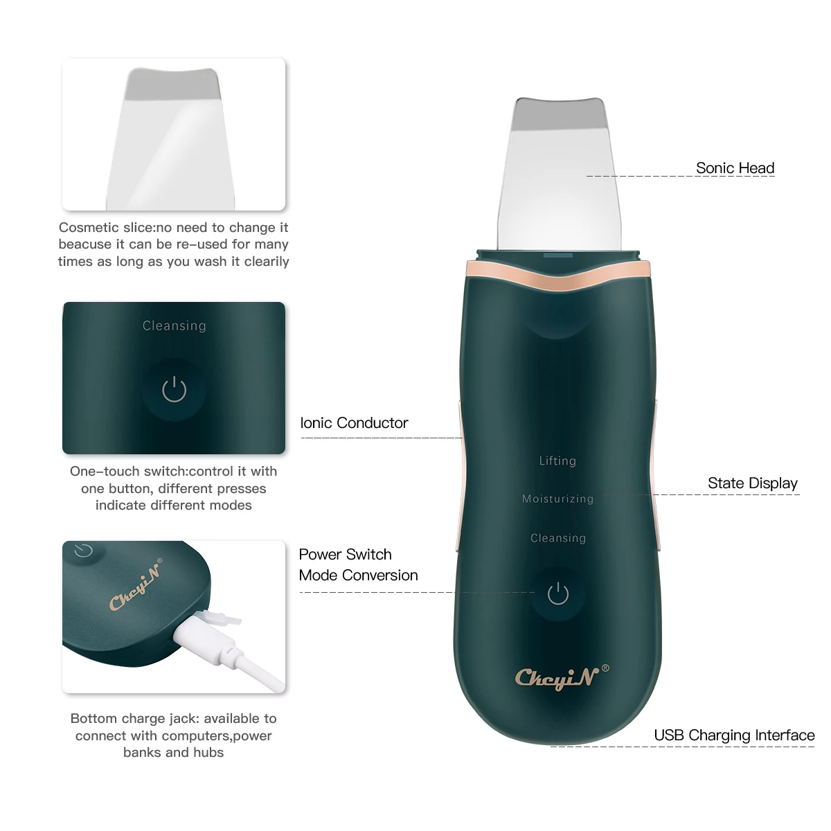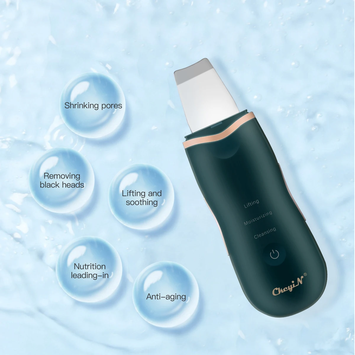 CkeyiN ультразвуковой уход за лицом ионический скруббер Отшелушивающий дермабразия вибратор угрей удаление грязи очиститель пор для лица