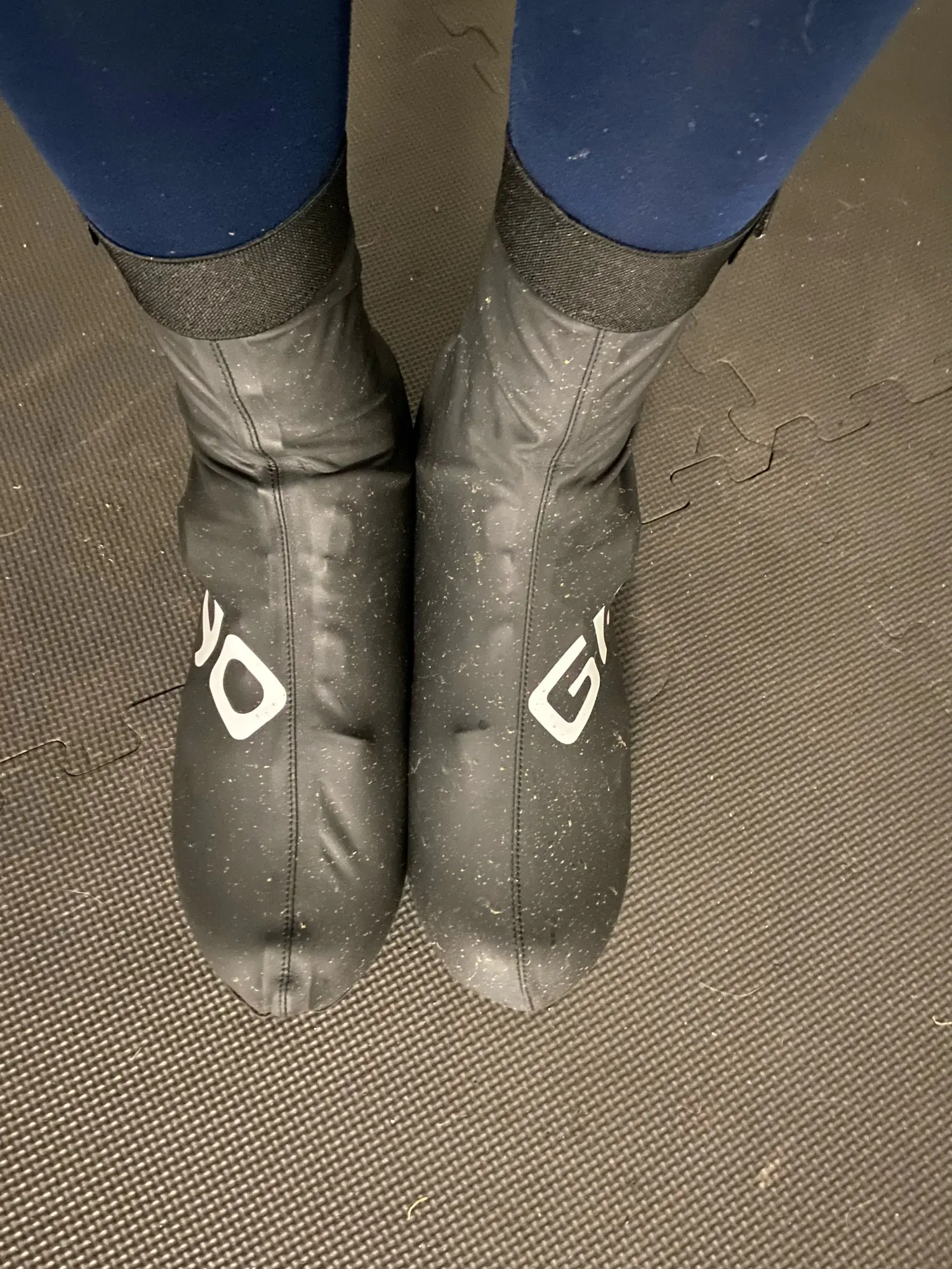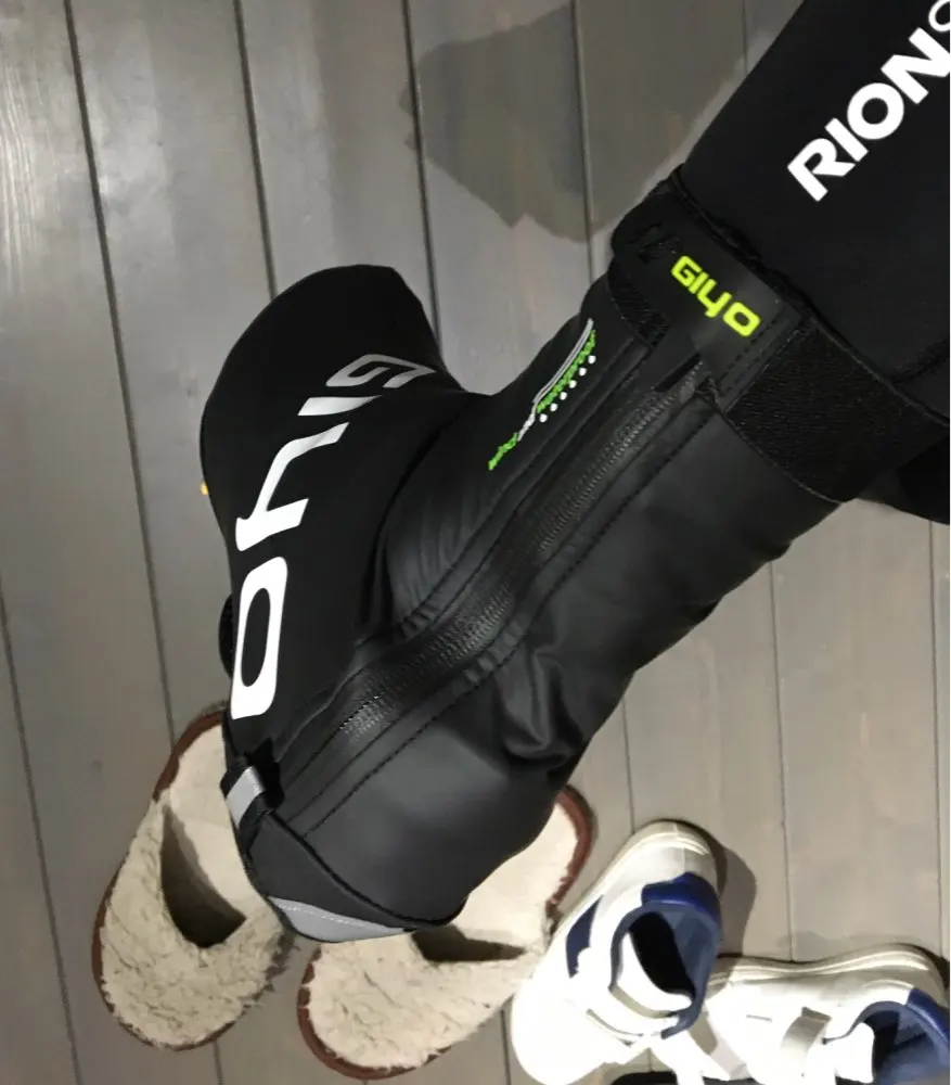 Налезают на обычные кроссовки, теперь ноги не так мерзнут на ветру. Греют не знаю как, но от дождя и ветра спасают, это и нужно)