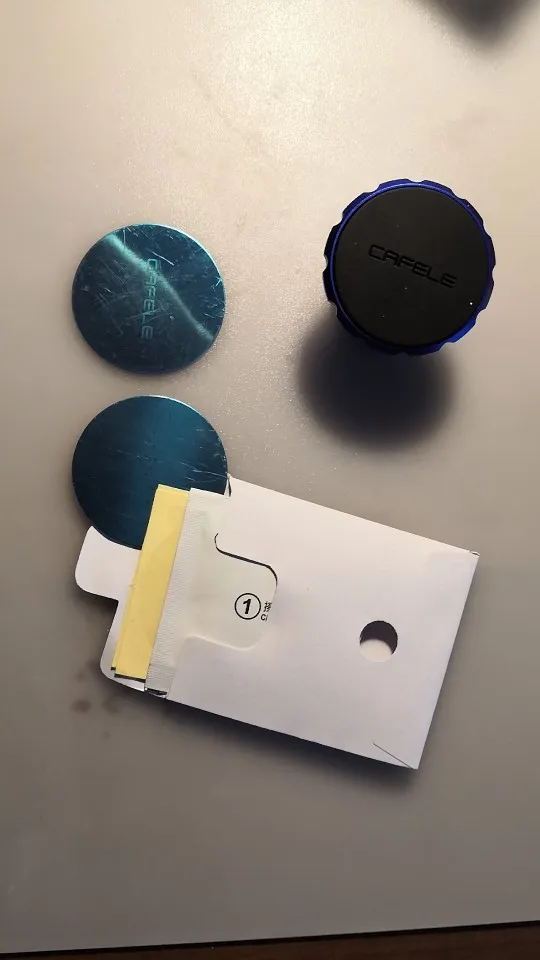 Отличный держатель! Сделан очень качественно. В комплекте идут два металлических диска, которые крепятся на телефон, один запасной двухсторонний кружочек скотча для магнитного держателя и, даже, две влажные салфеточки, для протирания места, на который будет крепиться держатель! Круто! Впечатлен! Это хороший сервис! Да, еще в комплекте два прозрачных пластиковых диска, которые я так и не понял для чего нужны. Доставляли очень долго, больше двух месяцев. Но, думаю, это не вина магазина, а вина компании, которая доставляла. Так что, большое спасибо Cafele Official Store за хороший товар!