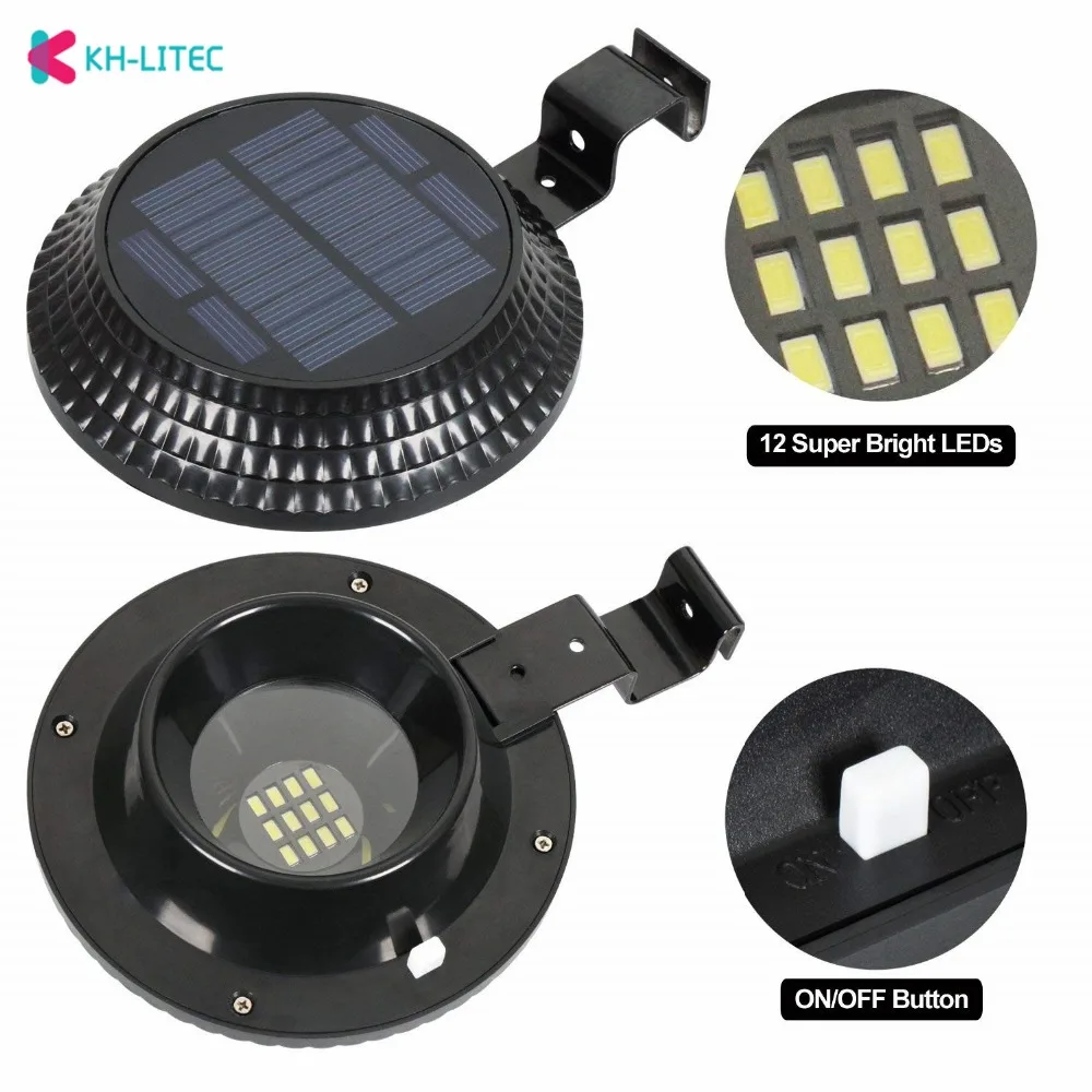 KHLITEC 12 Светодиодный светильник на солнечной батарее, водостойкий светодиодный светильник на солнечной батарее, уличный светильник, карнизы, лампы для улицы, садовый забор, светильник