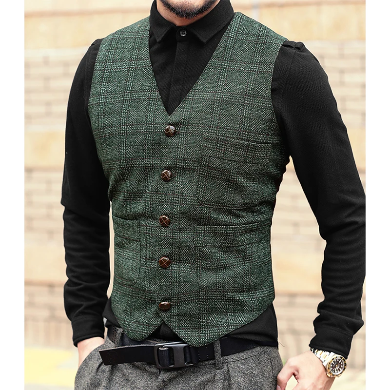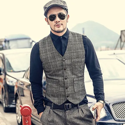 Для мужчин осень-зима новый ретро тонкий Повседневное решетки костюм жилет Для мужчин жилет европейский бренд Стиль плед Винтаж Бизнес жилет M97-3