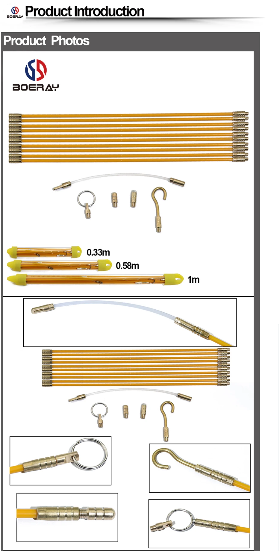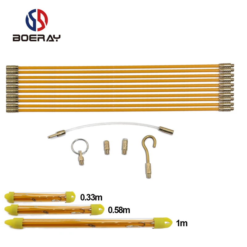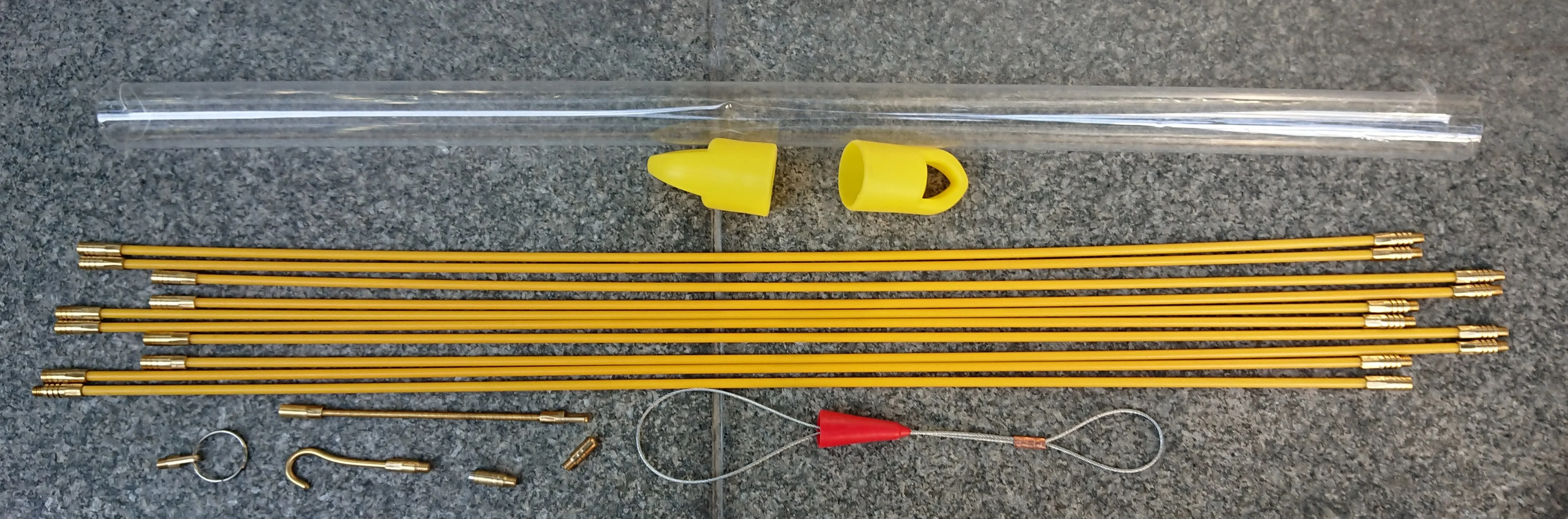 Эти непроводящие стержни из стекловолокна можно прикручивать вместе, чтобы образовывать более длинные длины для пробежки проволоки через стены, Чердаки, ползающие пространства, подполы и подвесные потолки.