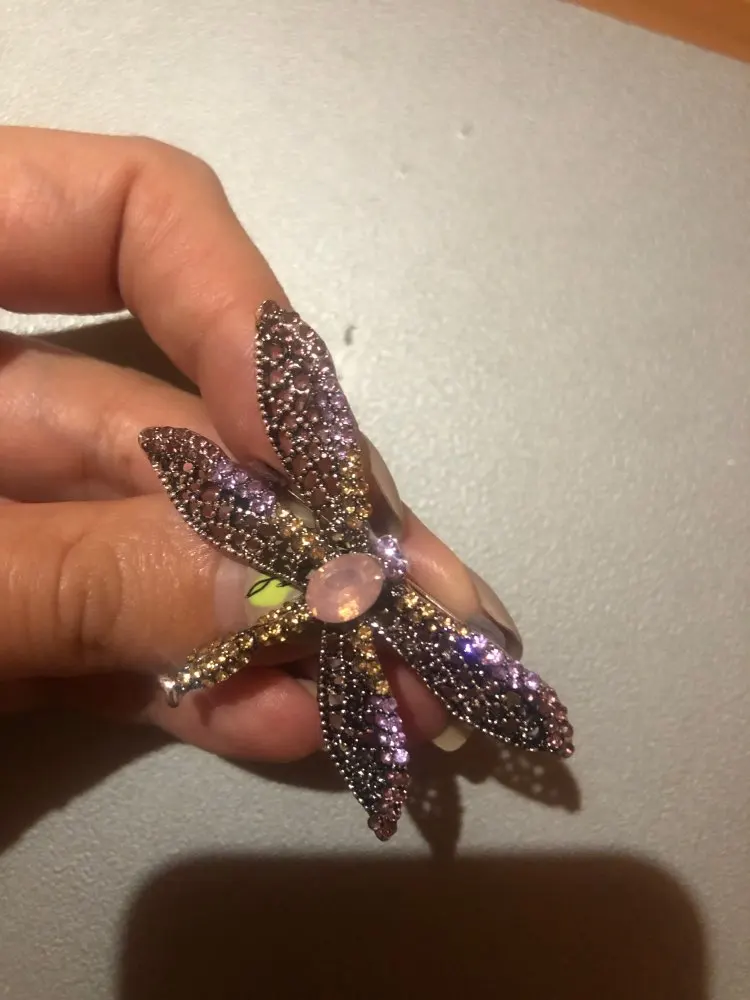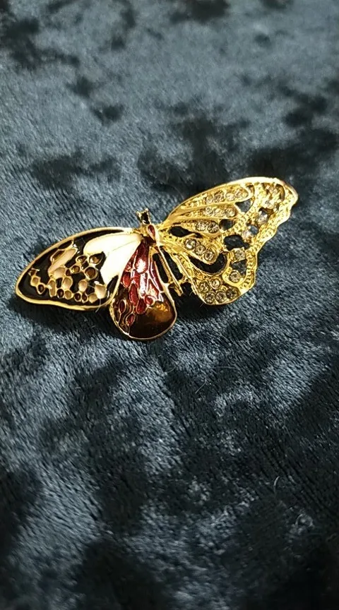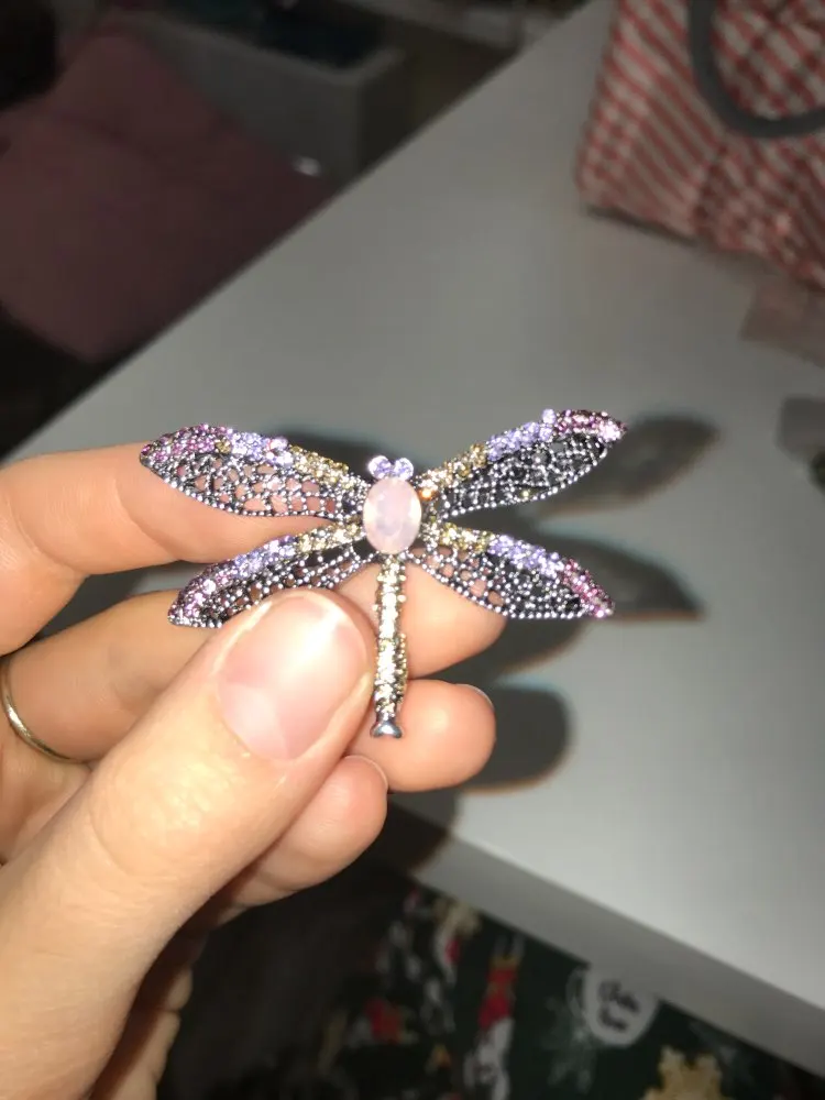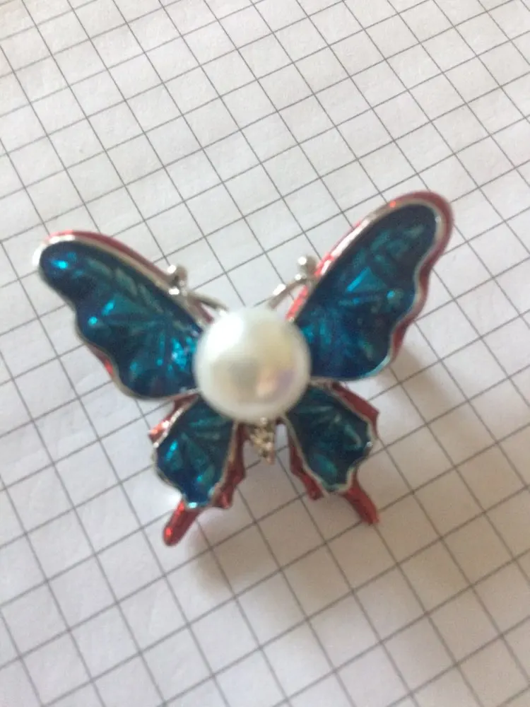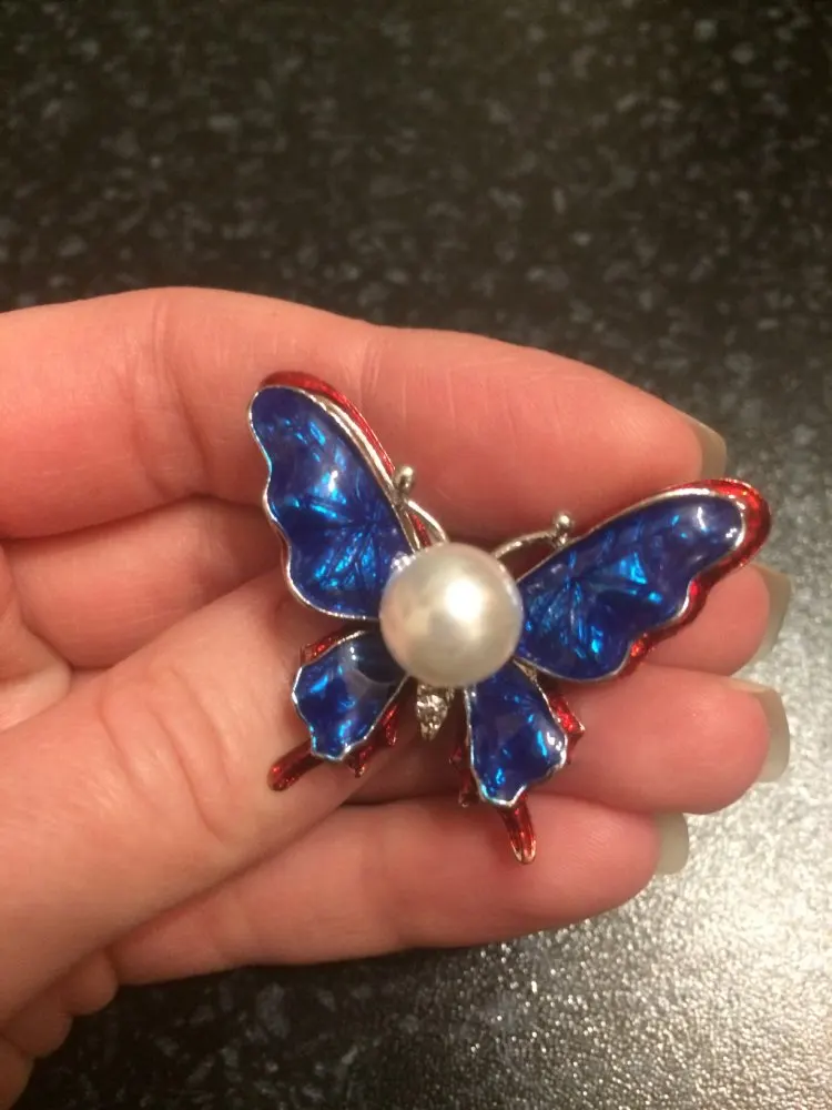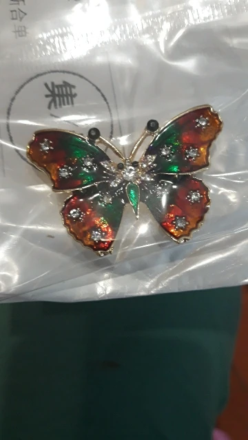 Описание и фото продавца в точности совпадают с реальной брошью. Бабочка сделана качественно, все камушки на месте. Порадовало, что иголка с обратной стороны броши тонкая и острая, закрывается на замочек, чтобы не расстегнулась и не потерялась. Довольна, рекомендую. Посылка шла месяц.