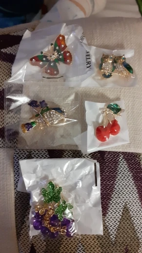 заказ доставлен быстро, упаковка надежная- пакет и пузырчатая пленка. Дошло все целое, все камушки на месте. Застёжки надёжные. Брошки яркие, симпатичные))
