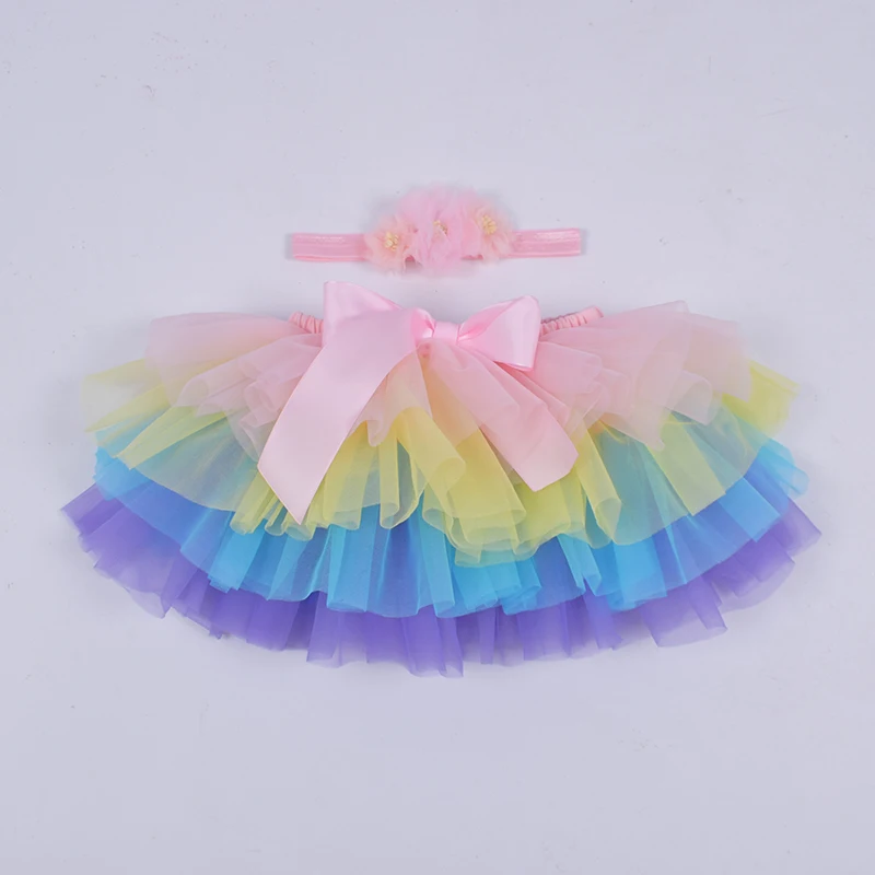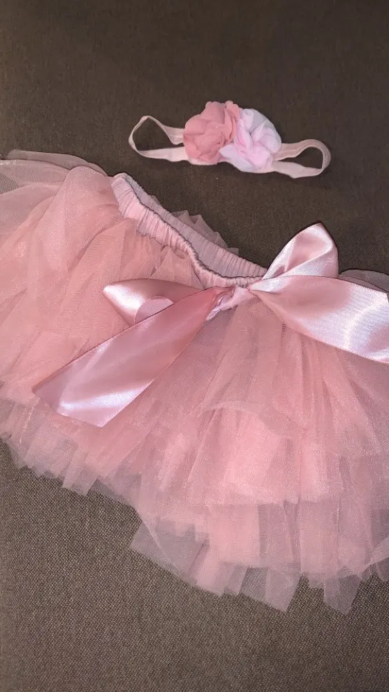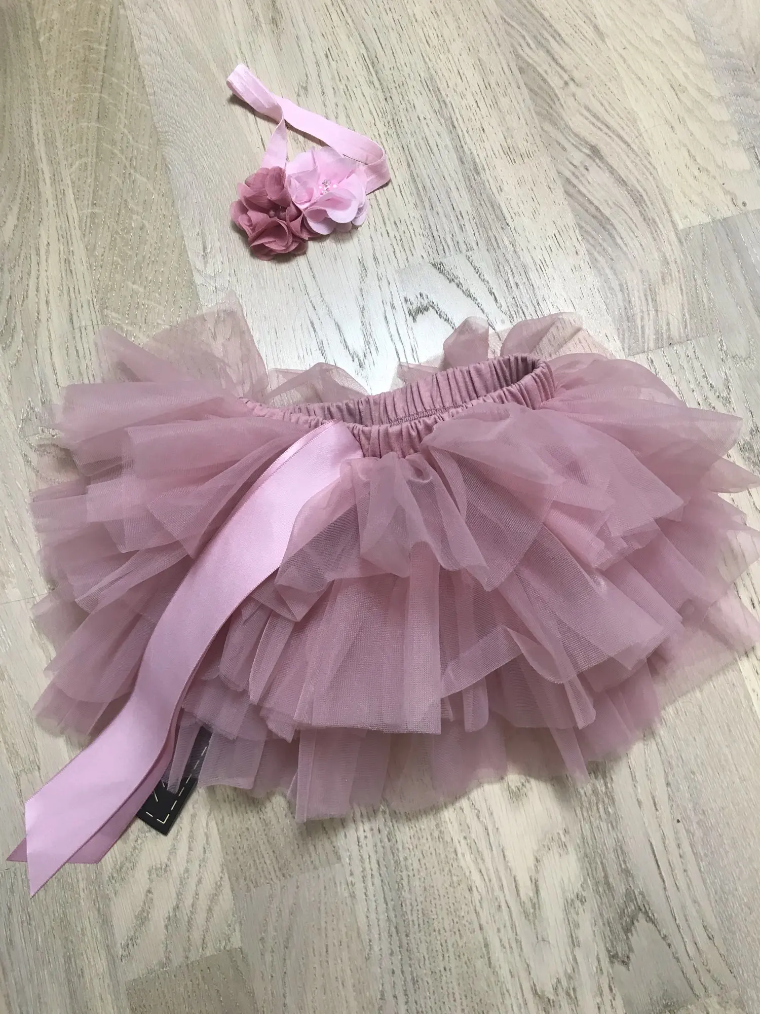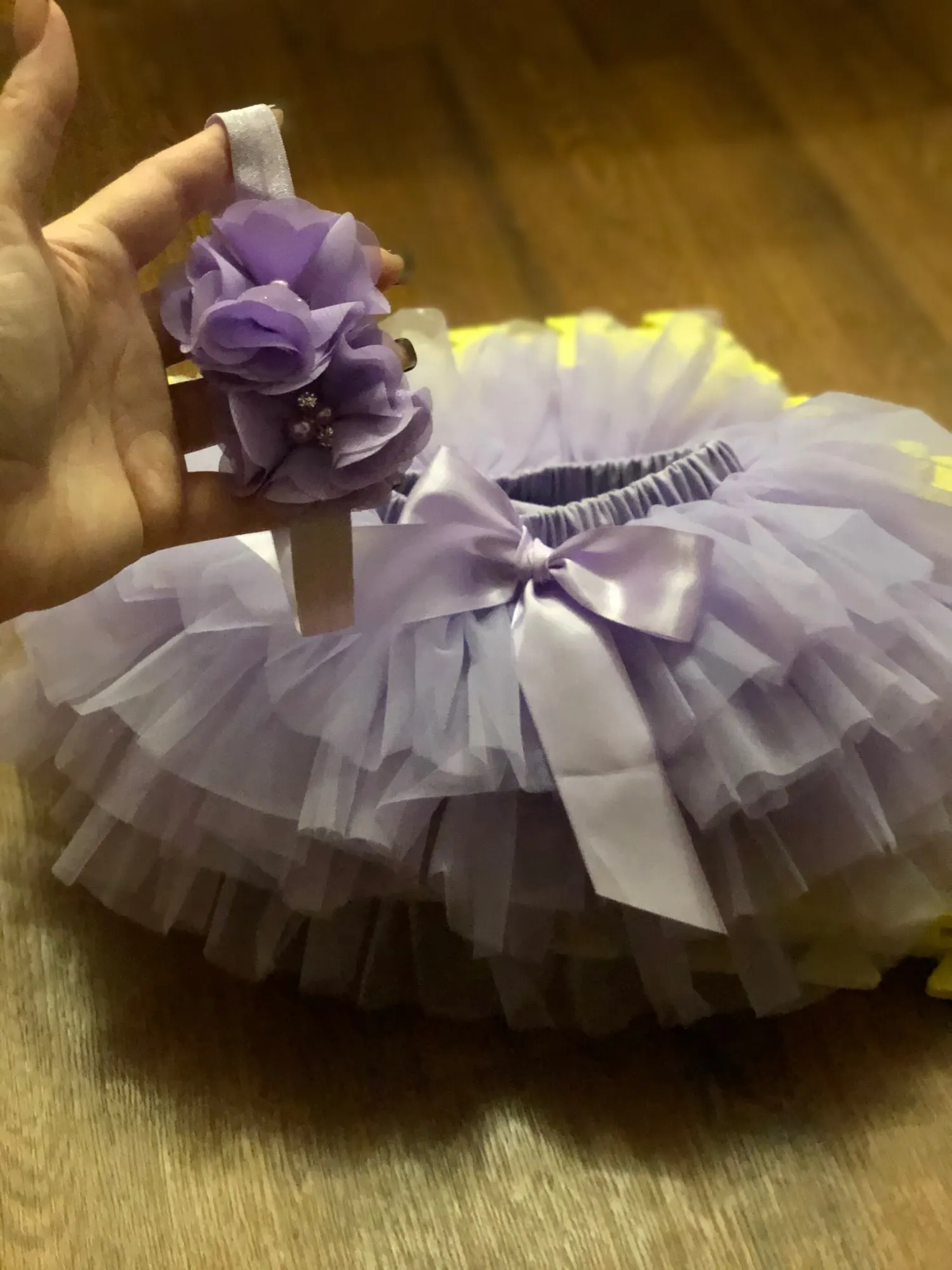 Юбка -пачка для маленьких девочек, комплект из 2 предметов , кружевные трусы из тюля , Одежда для новорожденных, Одежда для младенцев Mauv, повязка на голову с цветочным принтом, Детские сетчатые трусики
