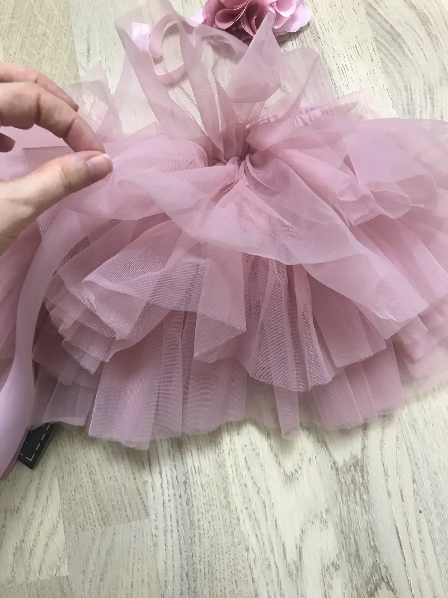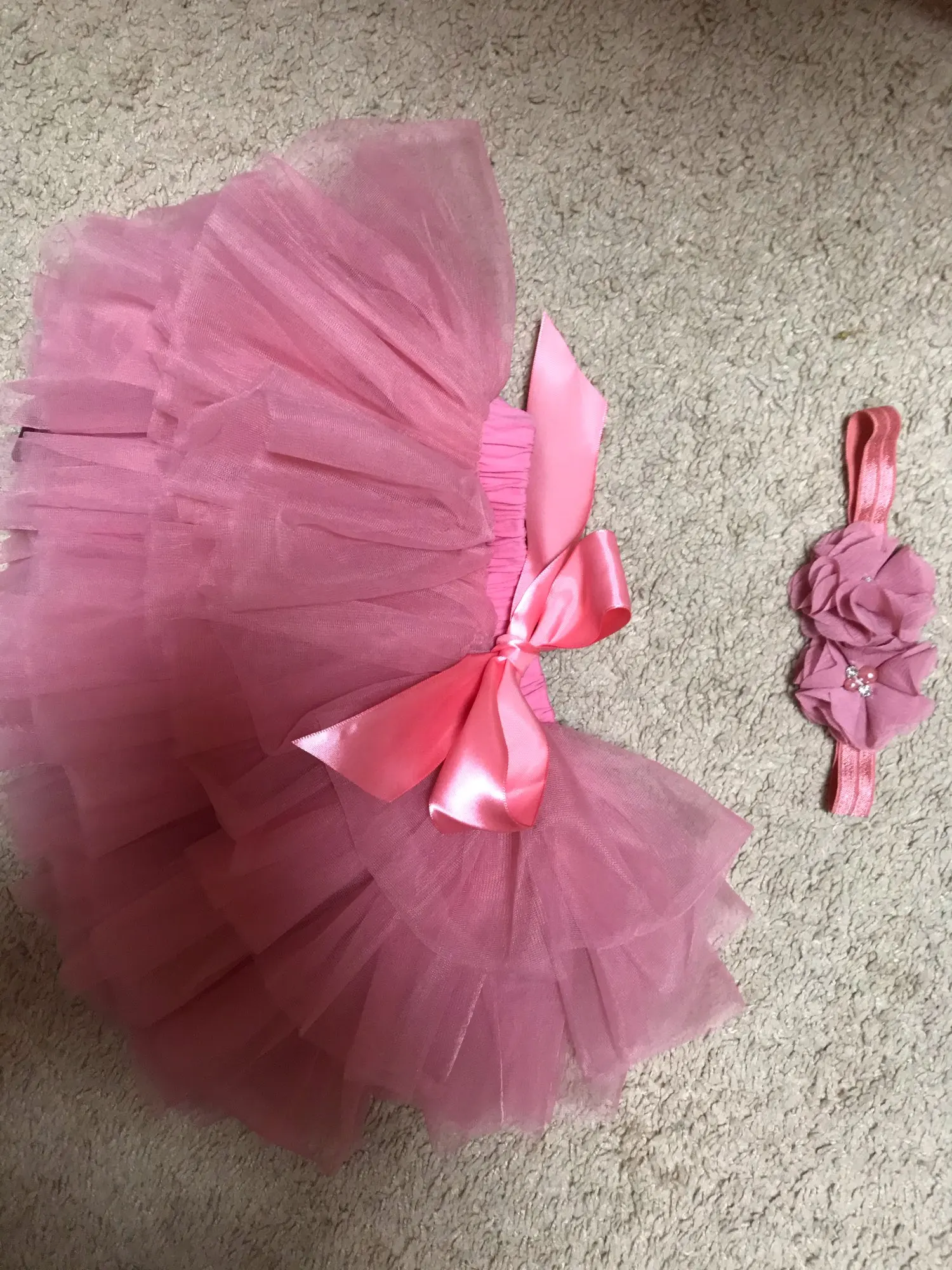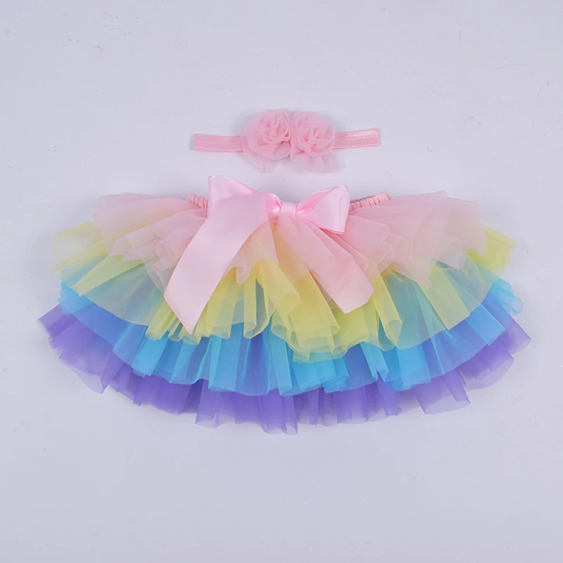 Юбка -пачка для маленьких девочек, комплект из 2 предметов , кружевные трусы из тюля , Одежда для новорожденных, Одежда для младенцев Mauv, повязка на голову с цветочным принтом, Детские сетчатые трусики