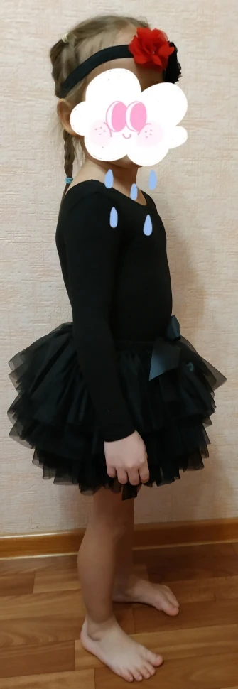 Заказала 12.11, а 28.11 уже пришло в почтовое отделение! Трек отслеживался. Юбочка клёвая! Очень пышная. На рост 105см смотрится хорошо, на талии сидит отлично, но при этом настолько эластичная, что налезла даже на ребёнка 11 лет (ростом 145см). Девчушка у меня худенькая, трусы ей в ножках сильно большие, болтаются. Чёрный цвет идеален. На фото выглядит бледноватым, но в жизни это не так, камера портит цвет.