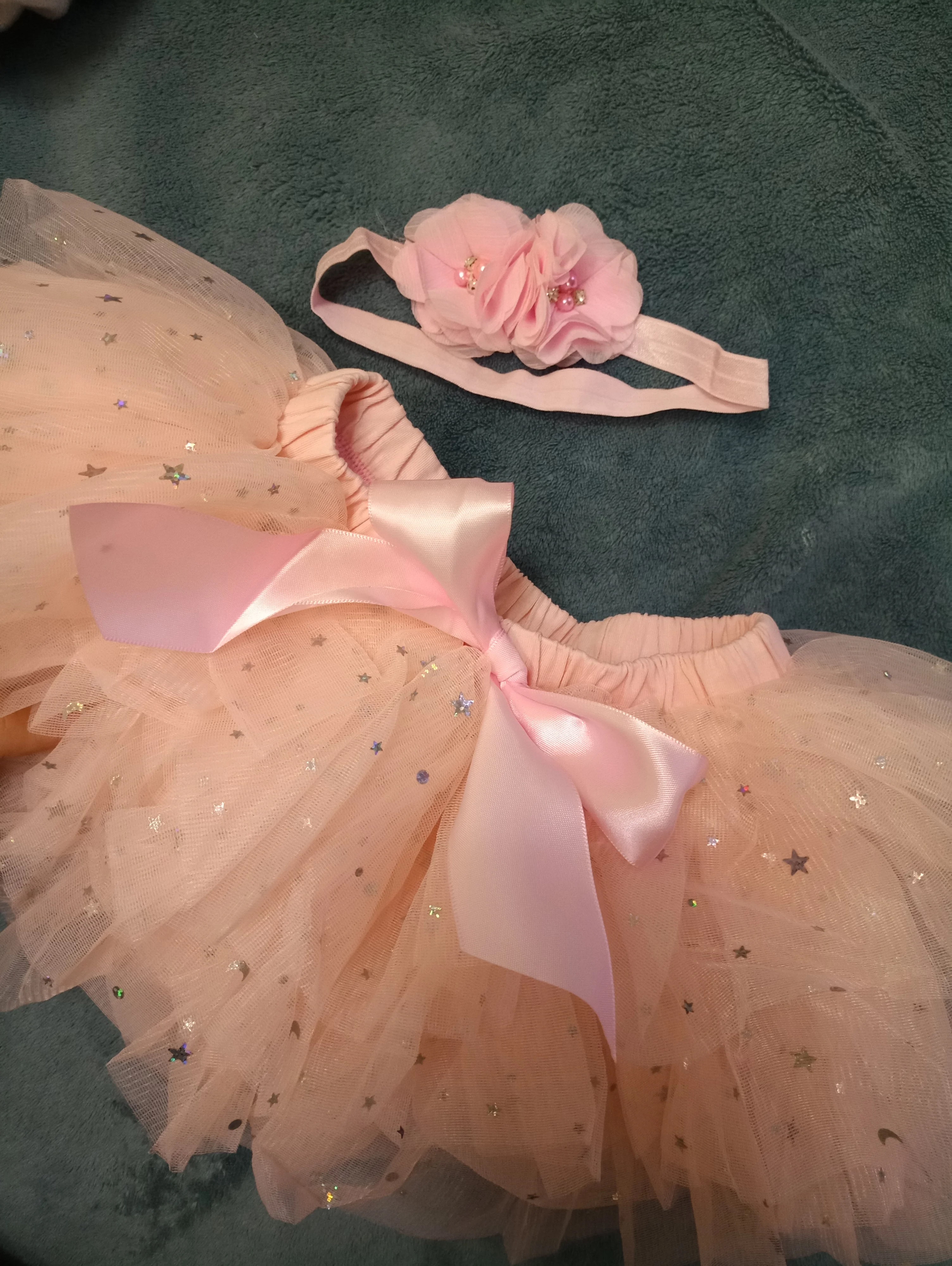 юбочка шикарная, качество на высоте, и повязка прелесть. точно как на фото. покупала навырост, поэтому пока все большое. доставка очень быстрая, около 2х недель. спасибо продавцу