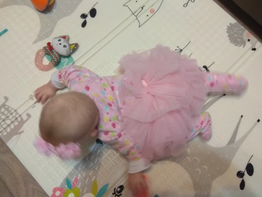 Хорошая юбочка, заказывала на 9 месяцев. Уже можно носить, думаю до 2 лет проносим.