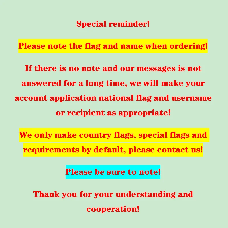 Дорогие друзья, размер каждого продукта немного отличается из-за различных партий продукции и производителей. Мы рекомендуем удалить оригинальные наклейки перед использованием наших продуктов для достижения самого красивого визуального эффекта! Индивидуальные наклейки с национальным флагом для горной дороги, велосипеда, велосипеда, шлема, рама, Топ труба, наездник, ID наклейки, бесплатная доставка Специальное напоминание: Пожалуйста, укажите свое имя, фамилию и флаг при оплате заказа, спасибо за сотрудничество. По умолчанию в левом верхнем углу мы указываем имя и фамилию ниже! Первое слово, которое вы посылаете, находится в левом верхнем углу, а остальное-ниже! Если нет заметки, и наши сообщения не будут отвечены в течение длительного времени, мы сделаем ваше приложение для учётной записи национальным флагом и именем пользователя или получателем по мере необходимости! По умолчанию мы производим флаги стран! Если вы хотите заказать изображения или у вас есть другие требования, пожалуйста, отправьте нам сообщение! Мы сделаем его в соответствии с вашими потребностями! Спасибо за понимание и сотрудничество!