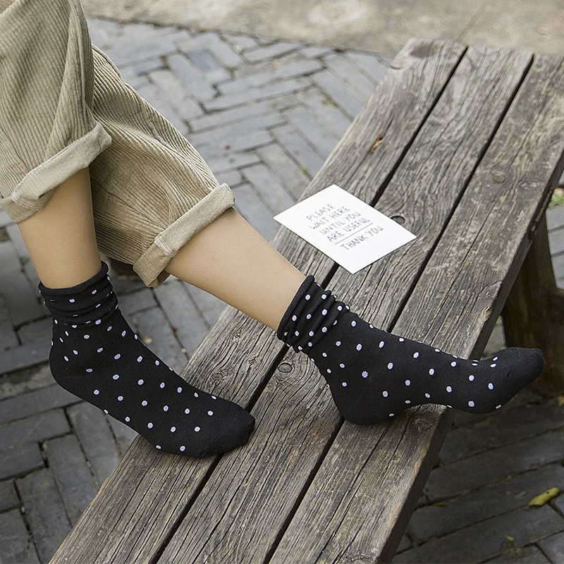 Носки женские хлопковые в горошек, уличная одежда в стиле ретро Харадзюку, модные мягкие удобные милые японские кавайные