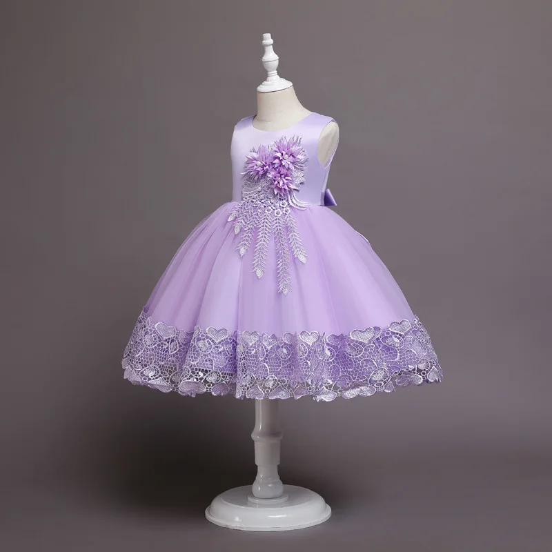 Нарядное платье для девочек на выпускной, кружевное детское вечернее платье для свадьбы, платье для первого причастия, Тюлевое платье с бантом