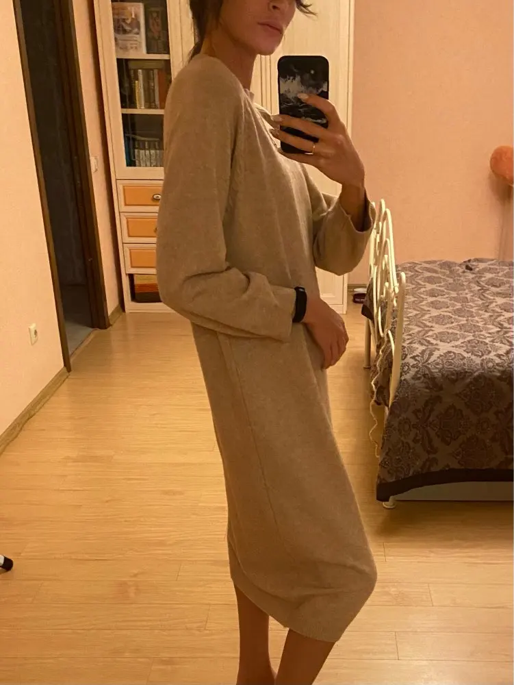 Платье хорошее,мягкое,теплое,без запаха. На 46-48 р. свободно.