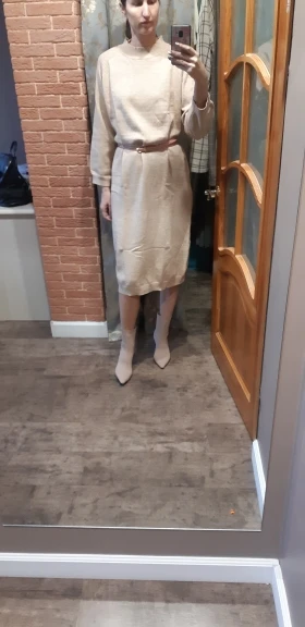 Платье просто великолепное. Мягкий плотный трикотаж. Бренд ONLI. Цвет красивый бежевый, не много меланж. Смотрится дорого и стильно. На мои параметры 100-80-106 село свободно, то что надо. Недостатки фигуры не подчёркивает. Заказом очень довольна. СПАСИБО продавцу за качество и быструю доставку.