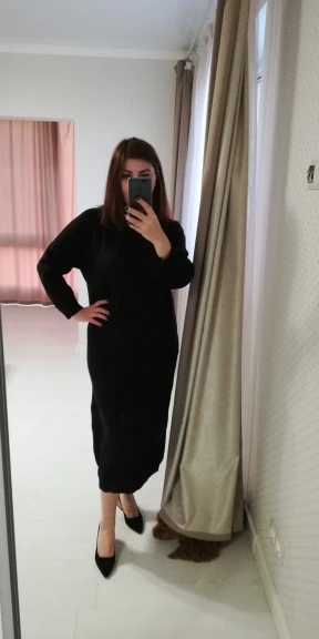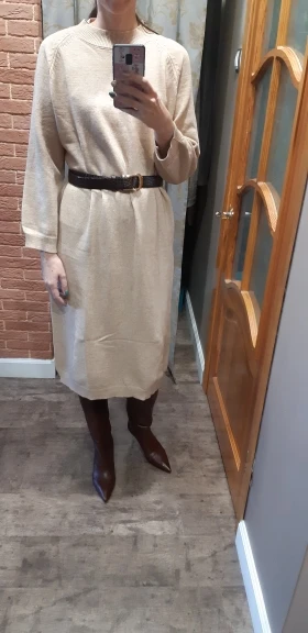Очень хорошее платье. На мой 52 размер даже слегка великовато, но мне нравится - село отлично. И длина хорошая до середины икры. Теплое и приятное к телу. Рекомендую товар и продавца