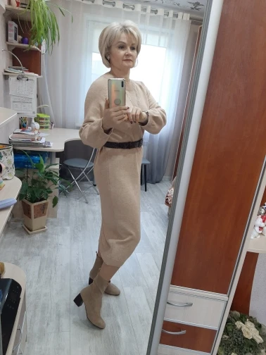 Красивое зимнее платье (зимнее, т.к. очень теплое)! Интереснее смотрится с поясом в тон платья - образ становится элегантнее.