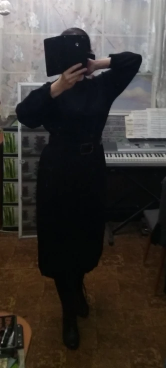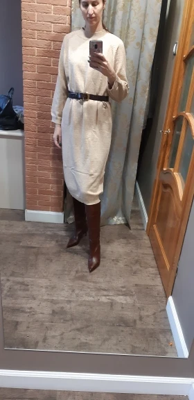 Шикарное платье, однако нужно уметь носить и сочетать с чем-нибудь. Качество супер, корейское производство. В составе действительно есть шерсть. Безумно рада. Без ремня и украшений в этом платье выгляжу как церковный работник. Однозначно рекомендую к покупке! Мой рост 166, плечи шире бедер, вес 50 кг