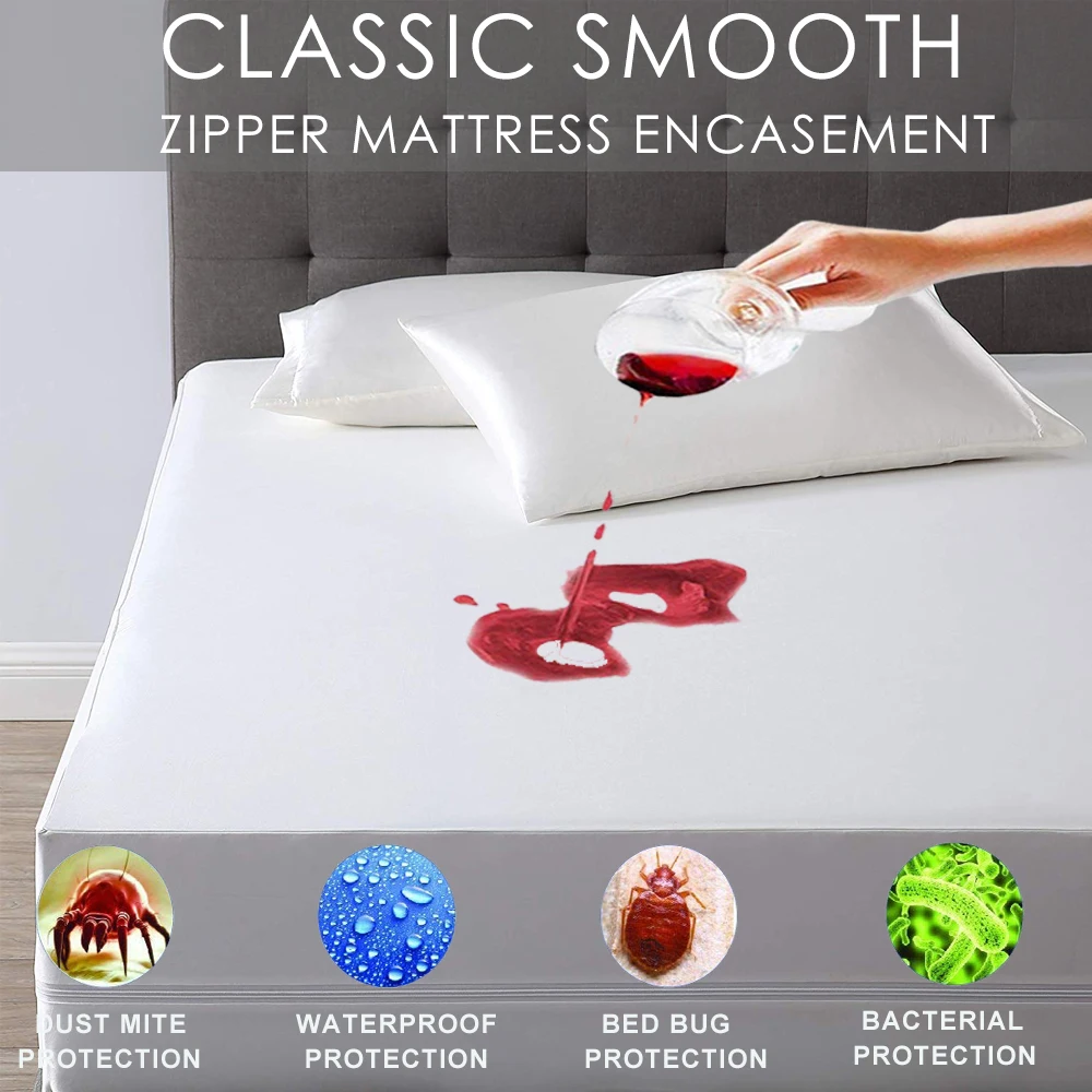 Защищает от клопов, аллергенов, бактерий, пылевых клещей, пота, мочи и жидкости Дышащая мембрана обеспечивает воздушный поток во время отпугивания жидкостей Технология молнии для защиты кровати 360 ° безопасный дизайн предотвращает случайные отверстия Окружает и защищает матрас со всех шести сторон Полностью водонепроницаемый и бесшумный Не содержит винил, фталаты или ПВХ Размеры: Twin 38x75x12 | Full 54x75x12 | Queen 60x80x12 | King 76x80x12